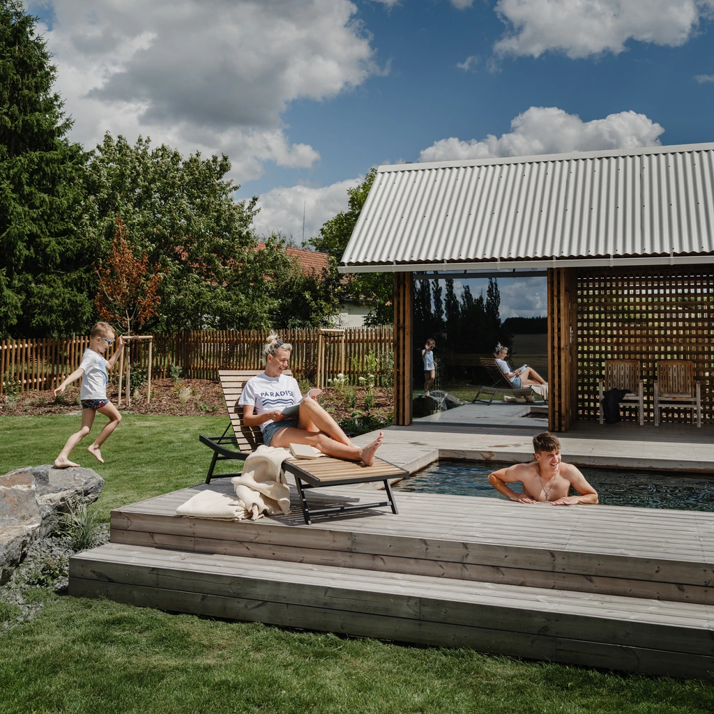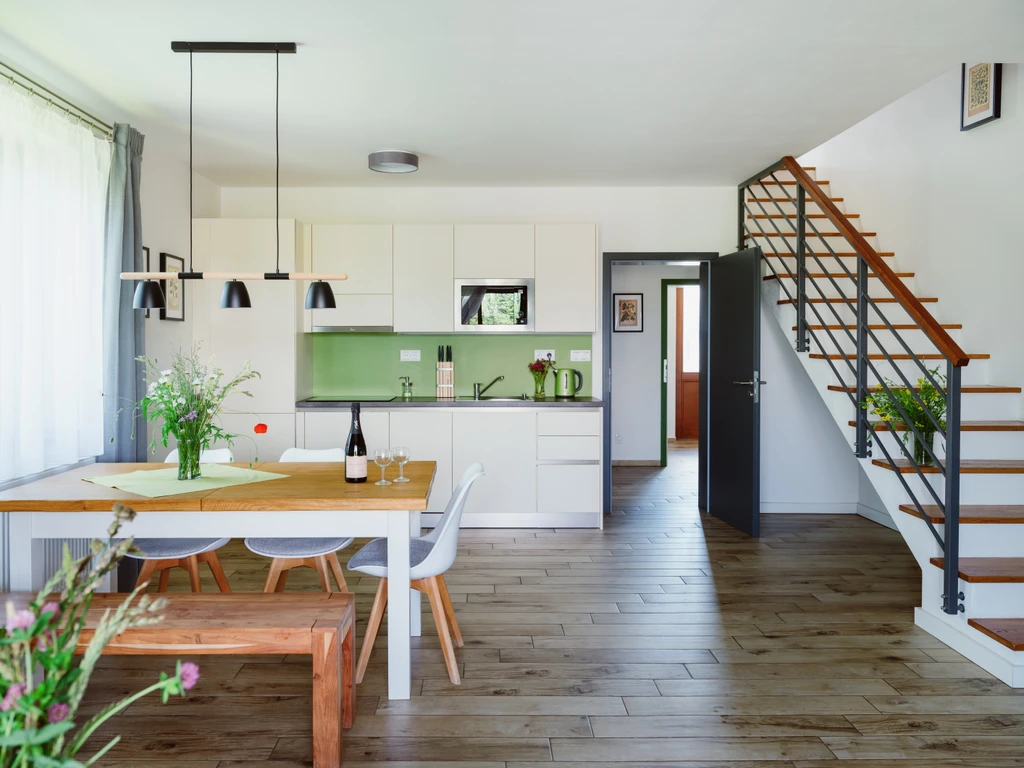 Apartmán Bohumila – komfortní zázemí pro rodiny i přátele, soukromá terasa, plně vybavená kuchyně, klid a příroda jihozápadních Čech. Čeká vás pohodlí a společné chvíle u bazénu, v sauně, s knihou na lehátku nebo třeba v koňském sedle.