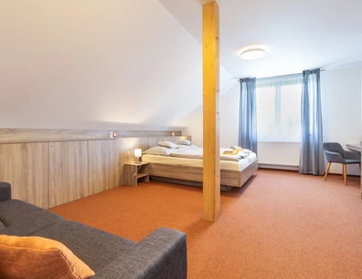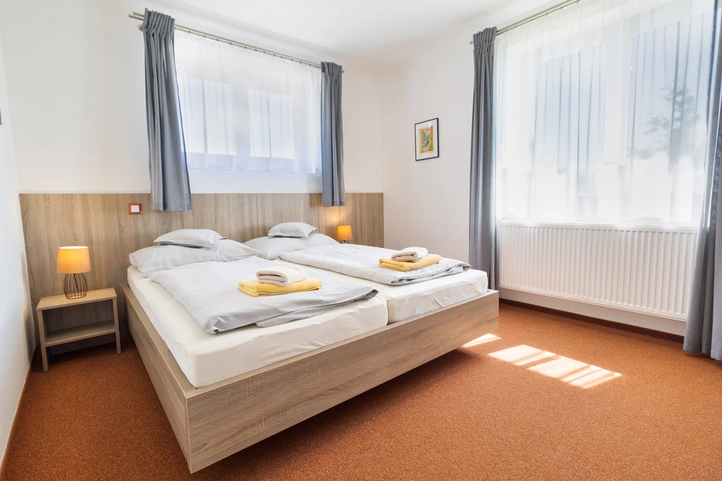 Na farmě najdete 2 apartmány s celkovou kapacitou až 18 lůžek. Každý apartmán má vlastní terasu s posezením a zahradním plynovým grilem. Společná je zahrada a wellness zóna s bazénem a saunou. Objekt je ideální pro skupiny přátel či rodiny s dětmi. Samozřejmostí je zázemí na uskladnění kol.
