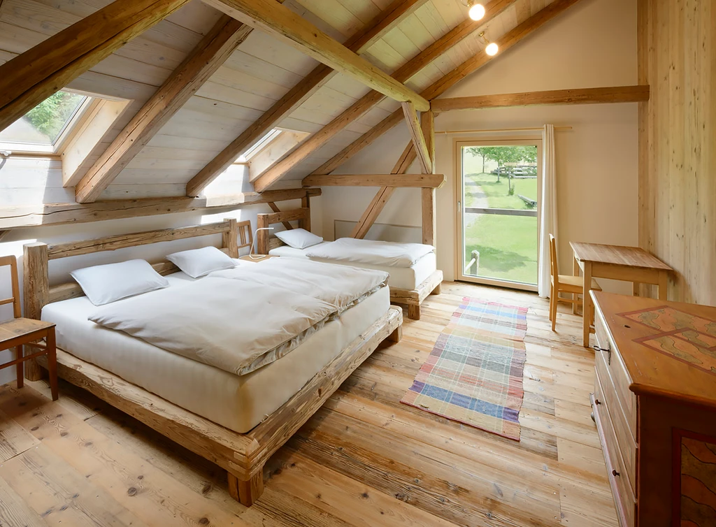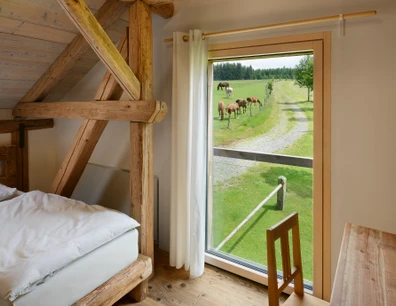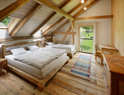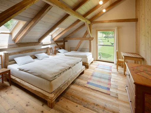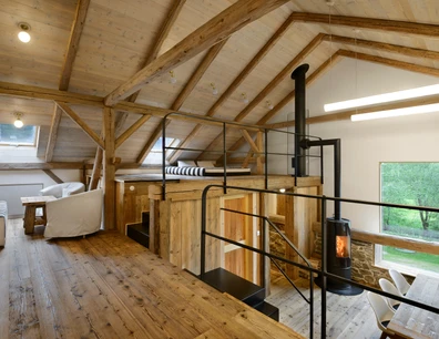Kapacitu 8 osob je možné rozšířit o 2 přistýlky. K dispozici je dvoulůžko ve společném prostoru na galerii. Poplatek činí 700 Kč za 1 osobu a je možné jej uhradit při odjezdu prostřednictvím QR kódu.