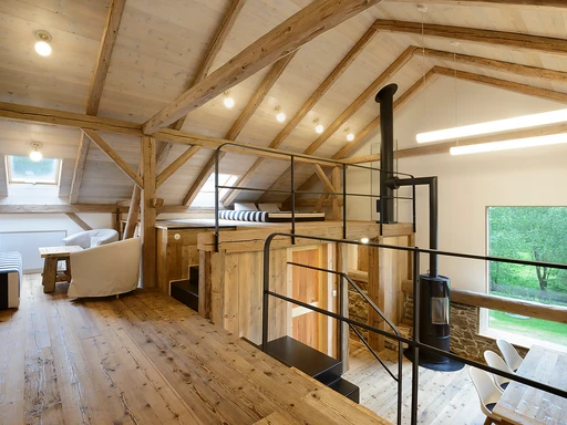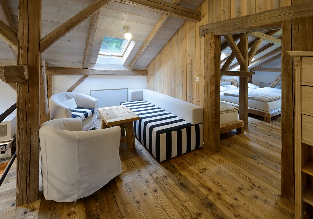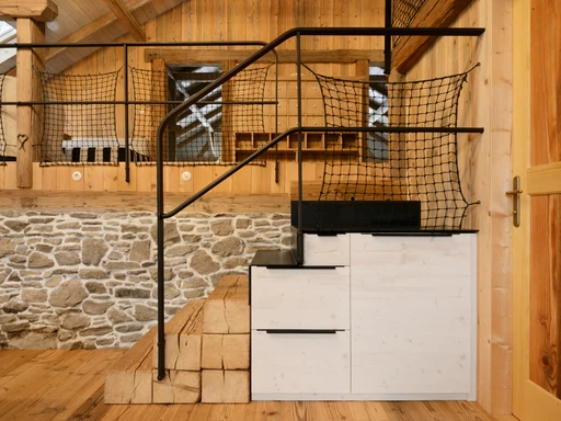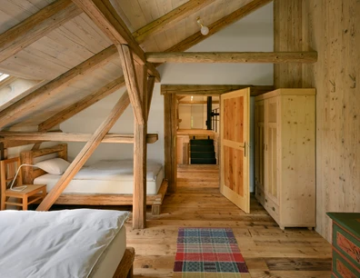 Překrásný apartmán vonící dřevem nabízí zázemí pro 8–10 osob a ideální prostor pro společné trávení času. Jeho 130 m² je rozděleno do tří úrovní – dvě samostatné ložnice, galerie s dalším dvoulůžkem, skvěle vybavená moderní kuchyně s krbovými kamny, útulný obývací prostor a prostorná koupelna. Každá ložnice má komfortní dvoulůžko a dvě jednolůžka a spánek je tu díky tichu, čerstvému vzduchu a pohodlným matracím hluboký a klidný.