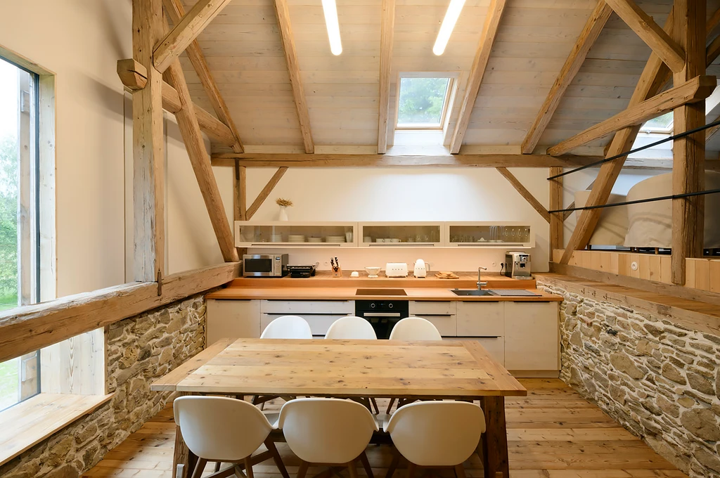S láskou zrekonstruovaná kamenná stodola v sobě spojuje půvab lidové architektury s moderním komfortem. Historie tu dýchá z každé zdi, wellness vás pohýčká a všudypřítomný klid a nádherná okolní příroda vás nadchne. Tohle je místo, kde se rodina nebo parta přátel konečně sejde beze spěchu.