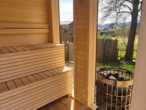 Užijte si zcela novou privátní wellness zónu přidanou do zahrady Buddha - najdete zde elektrickou saunu a luxusní vířivku umístěnou hned vedle domu. Váš vlastní soukromý spa ráj s nádhernými výhledy do krajiny!