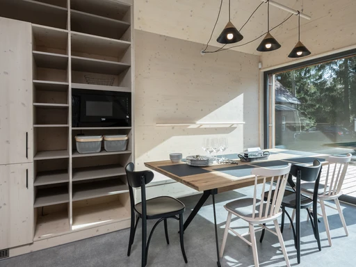 V oblíbené horské obci Bedřichov, známé svými tratěmi pro lyže i běžky, stojí moderní chalet inspirovaný alpskými středisky. Kombinace dřeva a prosklených stěn dává interiéru světlost i útulnost. Centrem domu je prostorný obývací prostor s krbem, velkým jídelním stolem, kuchyní a přímým vstupem na terasu. Tři ložnice pojmou až 12 osob, včetně velké postele v podkroví. Dvě koupelny – jedna se sprchou, druhá s vanou – zajišťují pohodlí pro větší skupinu. Místo je ideální nejen pro rodinnou dovolenou, ale i pro teambuildingy nebo aktivní pobyty v srdci Jizerských hor. A po dni na horách? Káva z Nespresso a výhled z terasy.