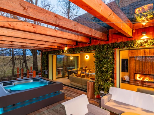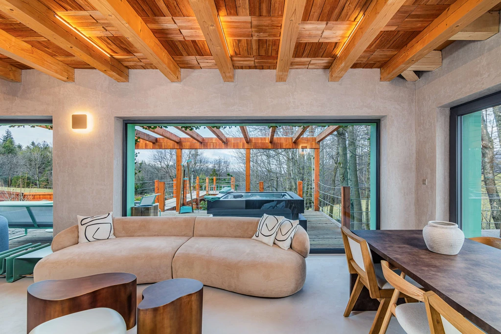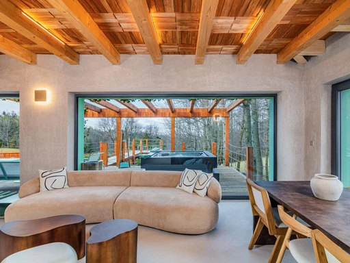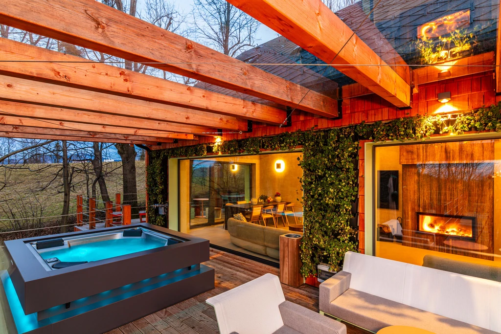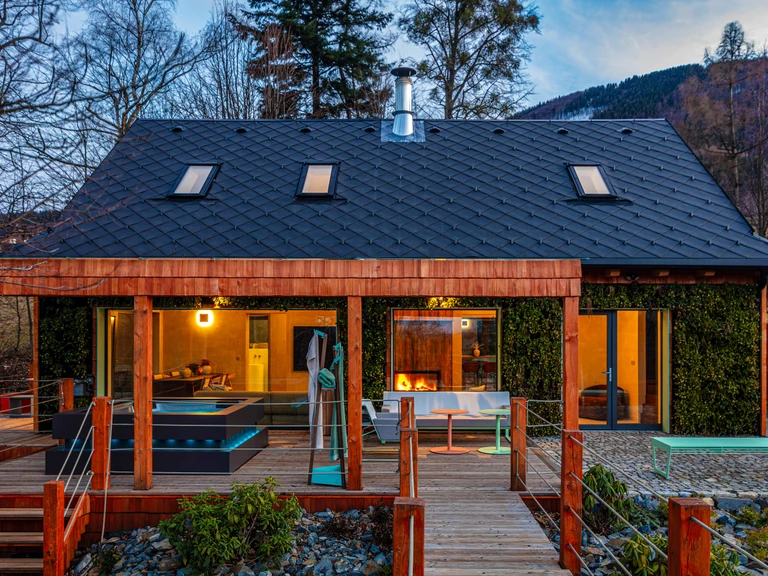 Nová Chaloupka V medu v Kunčicích pod Ondřejníkem nabízí klid, pohodlí a výhledy do přírody. Stylová terasa s vířivkou, velká okna a krb vás okamžitě naladí na vlnu pohody – ideální místo pro rodinu i přátele.