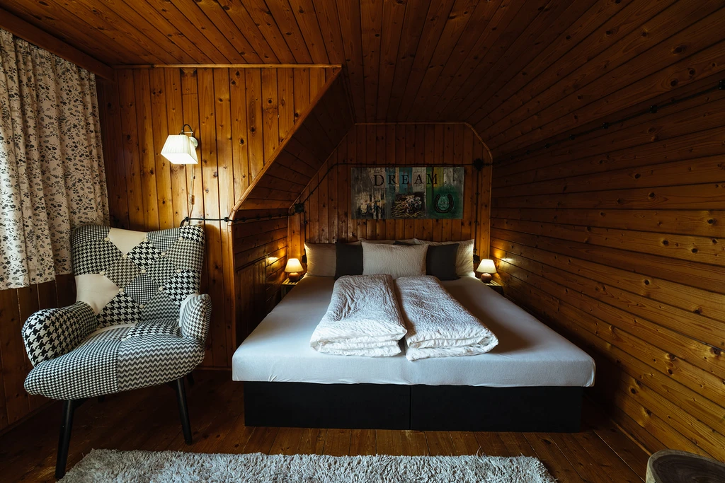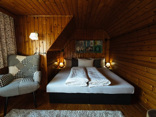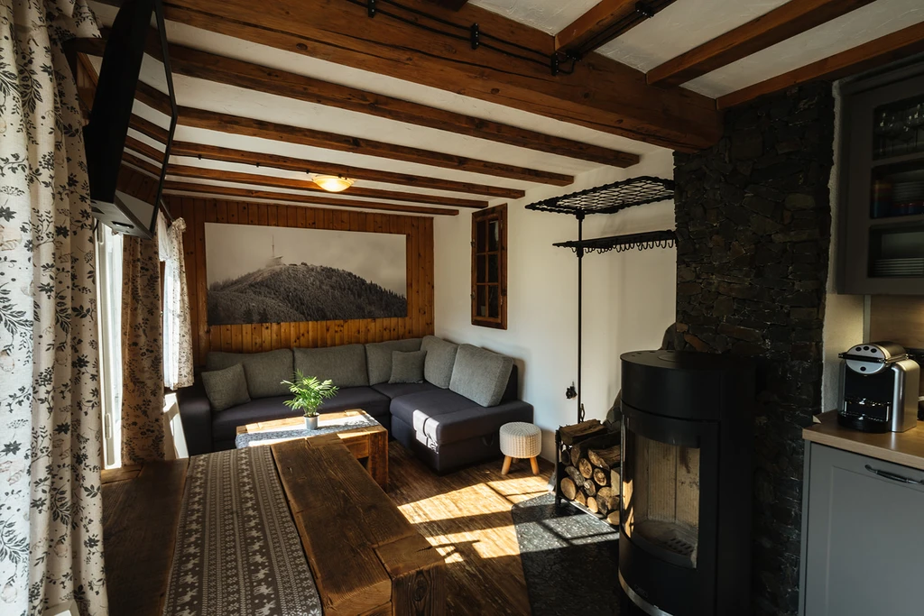V téhle chaloupce se přepíná z režimu „nestíhám“ do režimu „dýchej“. V létě grilování a výlety, v zimě horký čaj a běžecká stopa. Ať už přijedete s rodinou, nebo ve dvou, pohodlí tu najdete dost. V kuchyni najdete vše od varné desky po myčku, v obýváku rozkládací gauč, krb a TV. Ložnice jsou dvě – jedna dole, druhá nahoře i s další pohovkou a televizí navrch.