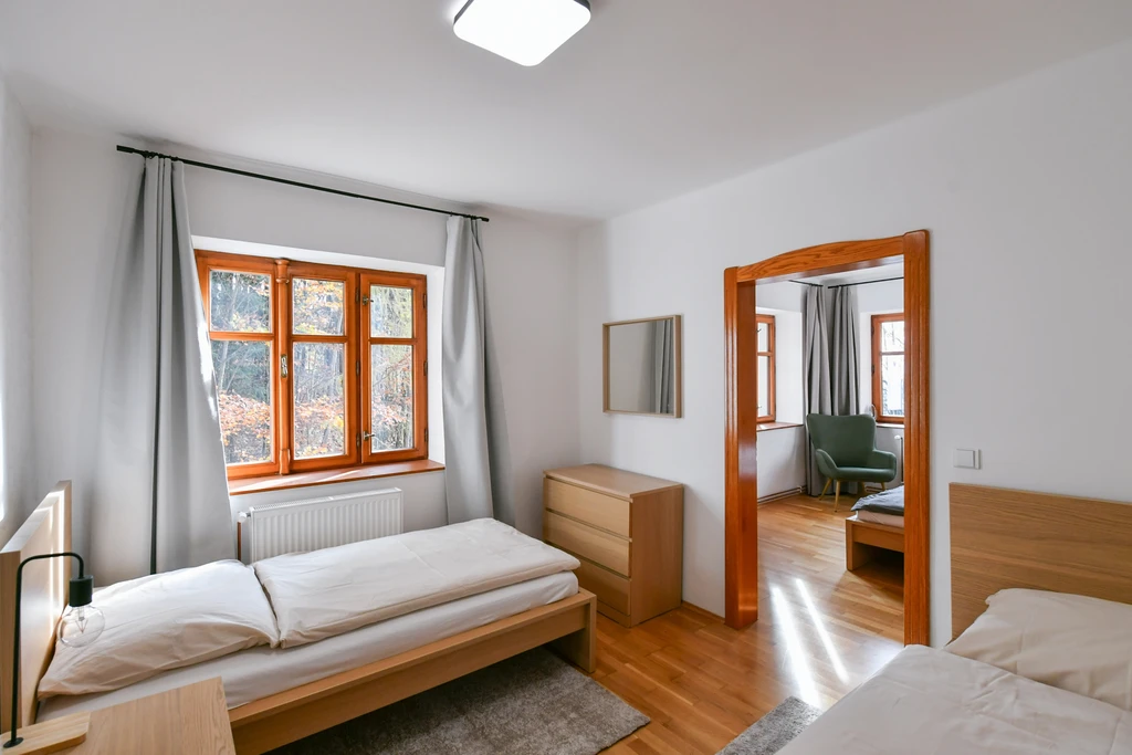 Představte si, jak po náročné projížďce na kole usedáte ke krbu s horkým čajem v ruce, jak s dětmi opékáte špekáčky po procházce horskými stezkami nebo jak si vychutnáváte saunu a osvěžující pivko po zdolání běžkařské trasy. Ať už se vydáte na procházku lesem na houby a borůvky, nebo si prostě jen užíváte nicnedělání, naše chalupa vám poskytne to pravé prostředí pro dokonalý odpočinek. Chalupa je snadno dostupná autem a stojí na vlastním pozemku obklopeném lesem. Klidná cesta k ní je využívána pouze místními chataři, což zajišťuje příjemné soukromí.