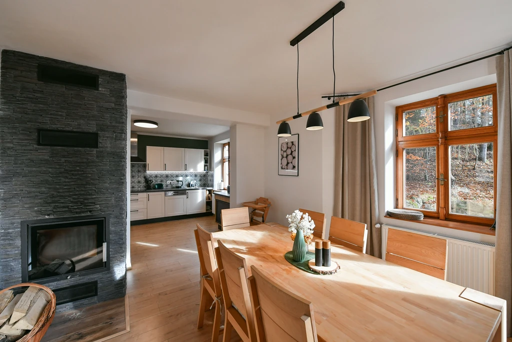 Krásná moderní nemovitost v Jizerských horách nabízí ideální útočiště pro každého, kdo touží po klidu a odpočinku.