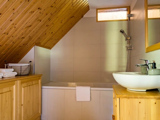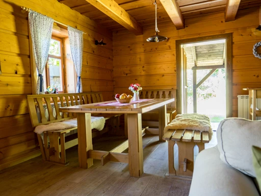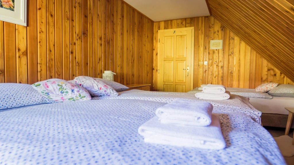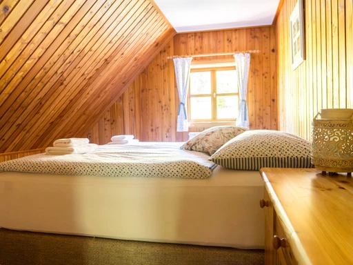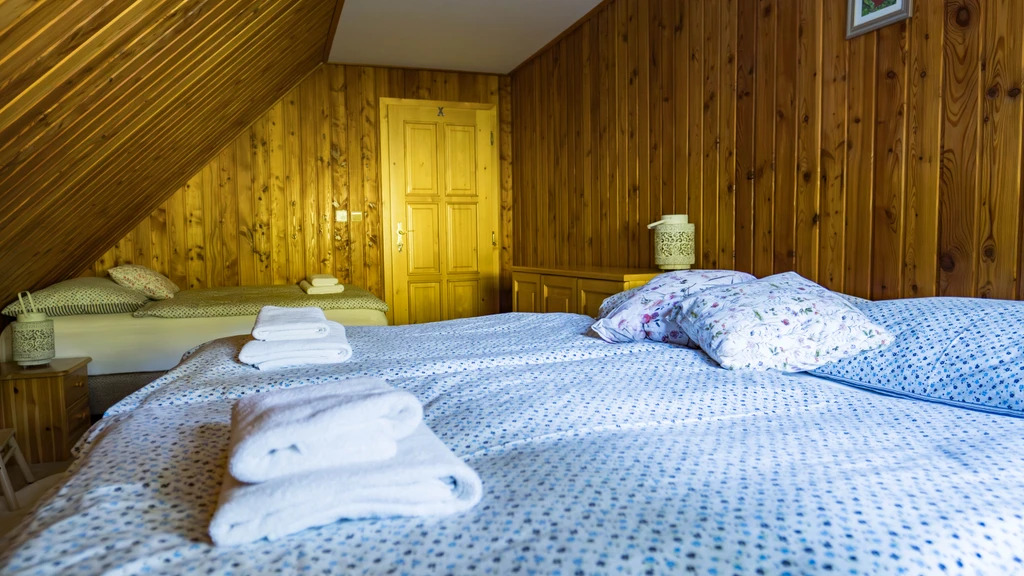 Chalupa Jednička nabízí pohodlné ubytování až pro 8 dospělých ve třech ložnicích. V přízemí se nachází prostorný obývací pokoj s kachlovými kamny, plně vybavená kuchyň s myčkou, kávovarem Dolce Gusto i základním výběrem čajů. Nechybí ani dětská židlička a postýlka. V přízemí je koupelna se sprchovým koutem a saunou, v patře pak druhá koupelna s vanou. Ideální pro rodiny i skupiny přátel, kteří hledají komfortní zázemí a klid. Každá roubenka disponuje plně vybavenou kuchyní, TV a možností připojení k internetu prostřednictvím WiFi. Navíc každá chalupa má svůj vlastní plynový gril, na kterém si můžete připravit grilované lahůdky na terase nebo si upéct špekáčky na společném ohništi v areálu Mátěráda.