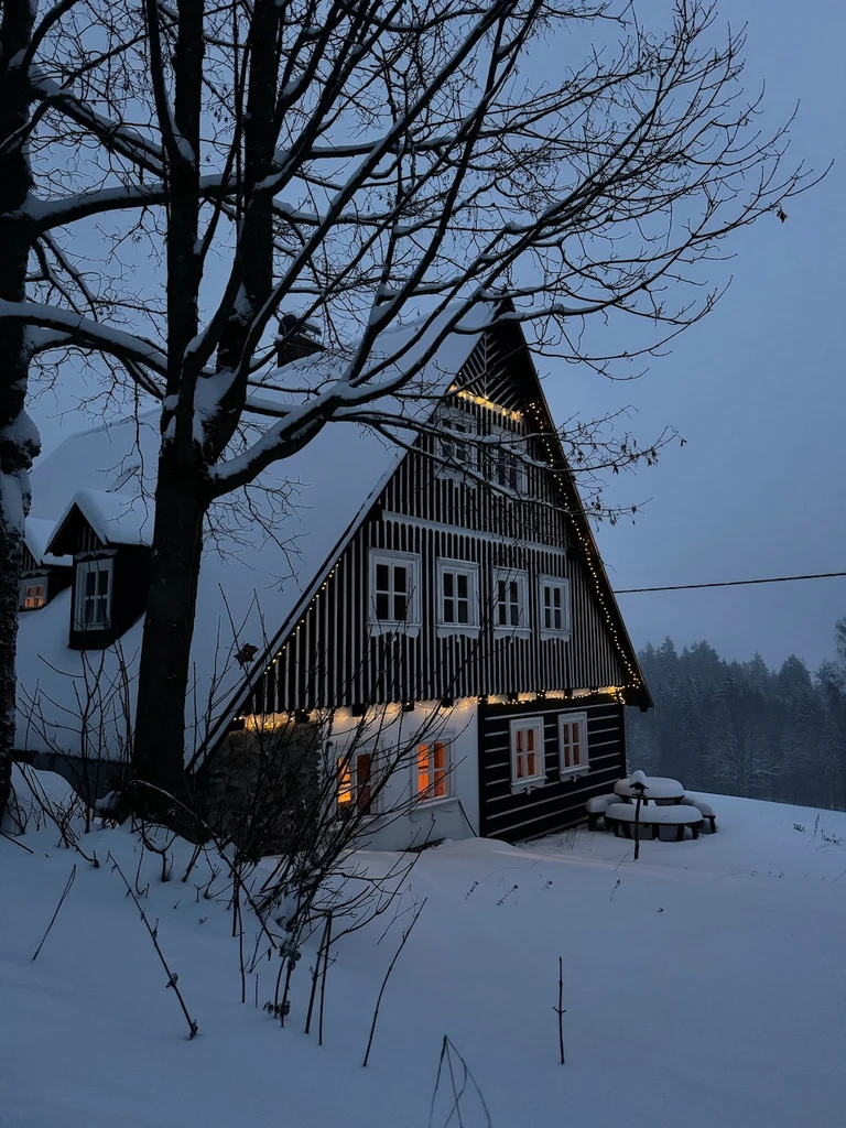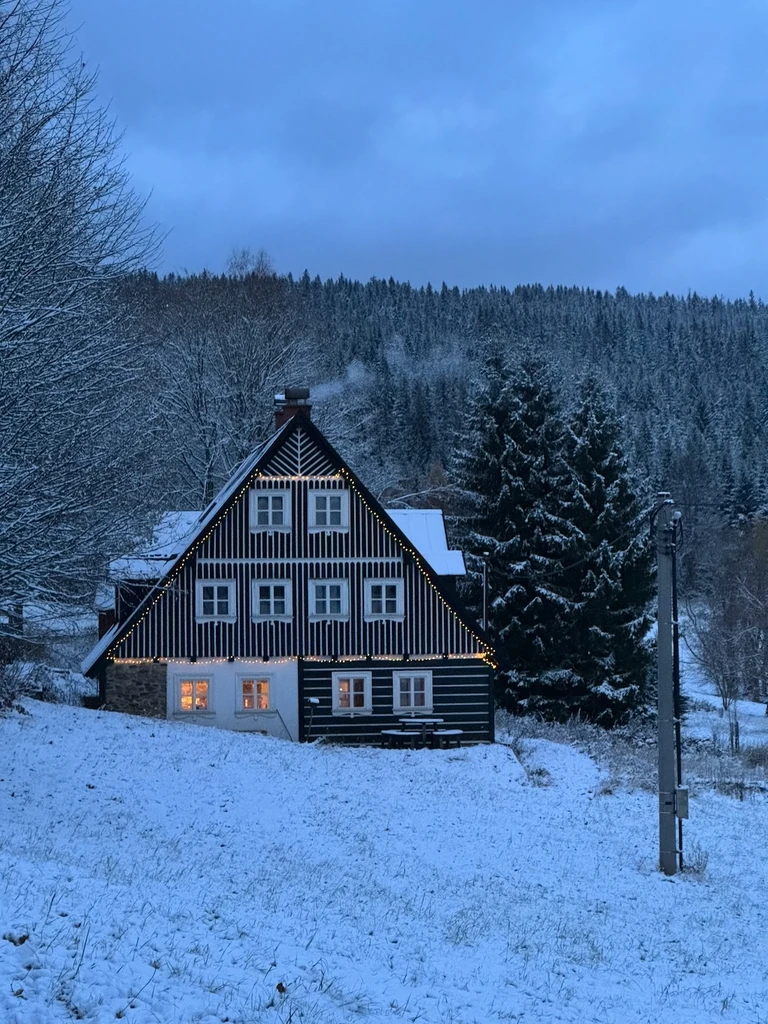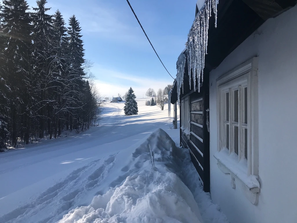 V okolí chalupy jsou lesy a louky, které na jaře a přes celé léto krásně kvetou a přes zimu se nabízí pro bobování, stavění bunkrů a další zimní radovánky.