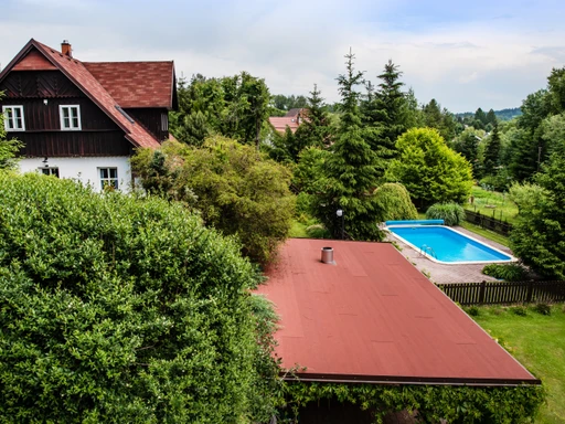 Když se venkovská romantika potká s trochou wellness… Tahle chalupa má duši – původní historická stavba, která prošla citlivou proměnou, ale pořád voní po venkově (v tom nejlepším slova smyslu). Čeká vás zahrada jako z pohádky, bazén pro letní lenošení a finská sauna s ochlazovací káďí. Ideál na vypnutí hlavy a zapnutí pohody.