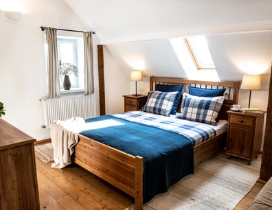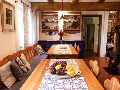 Pokud máte pocit, že vám hlava bzučí jako úl a inbox už nechcete ani vidět, máme pro vás lék bez vedlejších účinků: stylovou chalupu, kde se čas vleče stejně pomalu jako letní odpoledne na dece. Tenhle 200 let starý dům prošel rekonstrukcí, která mu zachovala charakter a přidala pohodlí – tři ložnice s koupelnami, vybavená kuchyň a společenská místnost s krbem, kam se vejde celá parta a ještě zbyde místo pro košík hub.