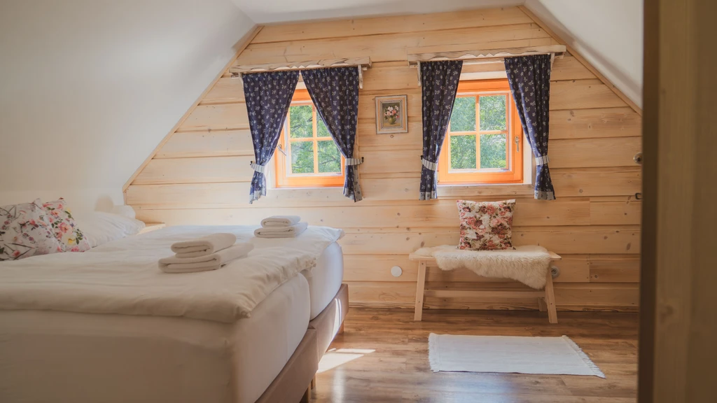 Pomněnka je útulná chalupa ideální pro rodinu či dva páry. Nabízí dvě ložnice s kvalitními matracemi, koupelnu se sprchou a saunou. V přízemí je plně vybavená kuchyň bez myčky, ale s kávovarem, čaji a vším potřebným. Nechybí obývací pokoj s kachlovými kamny, dětská postýlka a jídelní židlička. Pro vaše pohodlí jsou připraveny i kuchyňské utěrky a mycí prostředky. Roubenka disponuje TV a možností připojení k internetu prostřednictvím WiFi. Navíc každá chalupa má svůj vlastní plynový gril, na kterém si můžete připravit grilované lahůdky na terase nebo si upéct špekáčky na společném ohništi v areálu Mátěráda. Pomněnka spojuje komfort, praktičnost a rodinnou atmosféru.