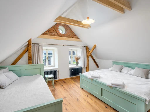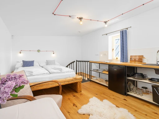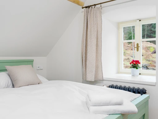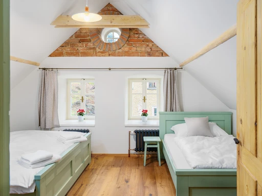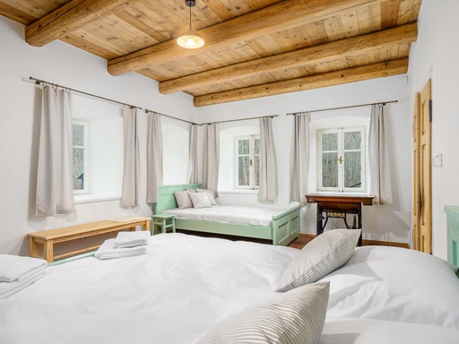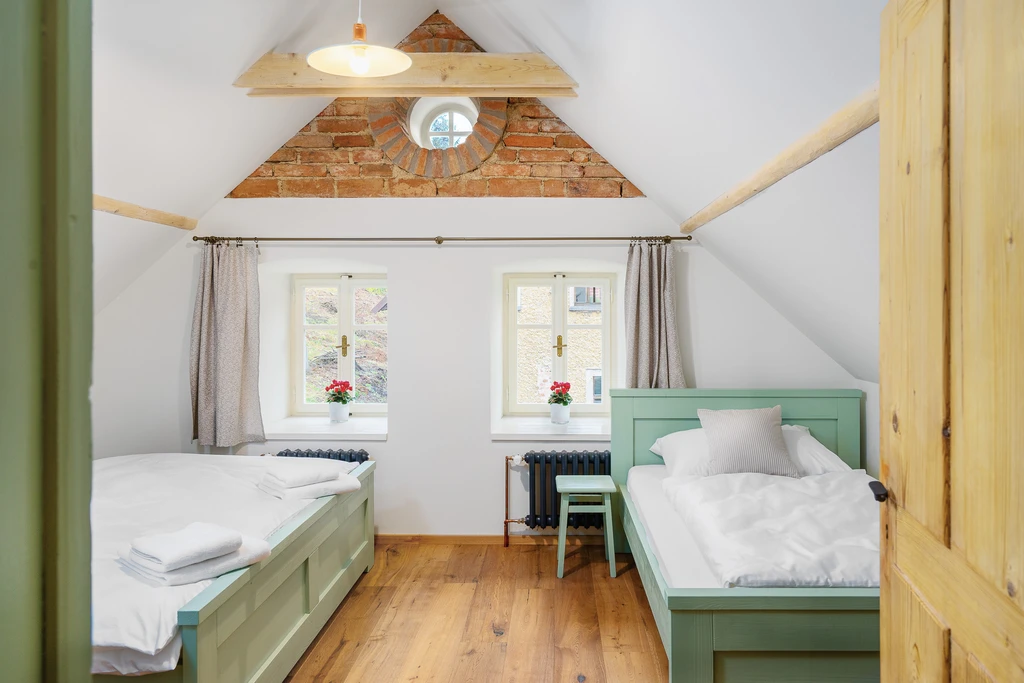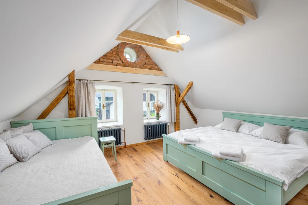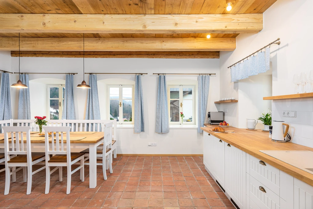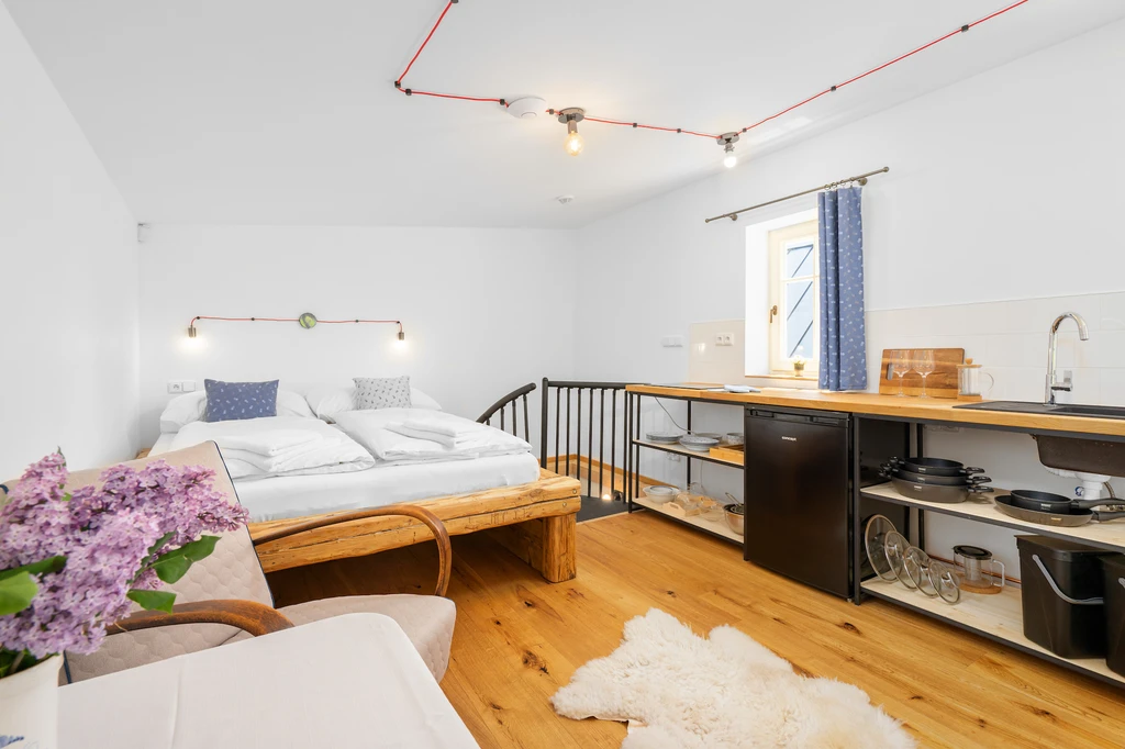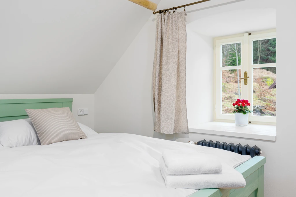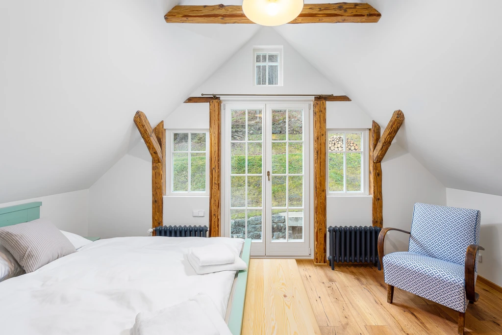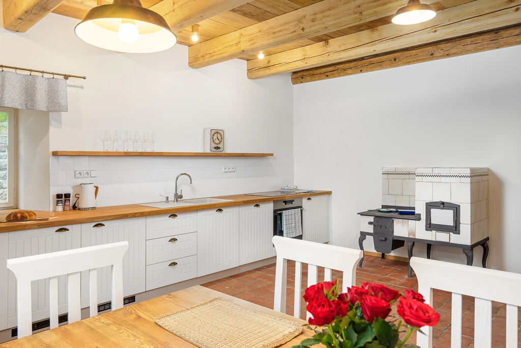 Vítejte ve staré sklářské chalupě z roku 1876, která dnes nabízí stylové útočiště pro partu až jedenácti lidí. Čtyři ložnice, dvě koupelny, tři WC a hlavně velká sednice s dřevěným stropem a kachlovými kamny, od kterých vás večer zvedne snad jen vůně večeře. A pokud vás přijede víc, vedle stojí Apartmán Domeček – stačí mrknout na majitele a je váš.