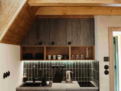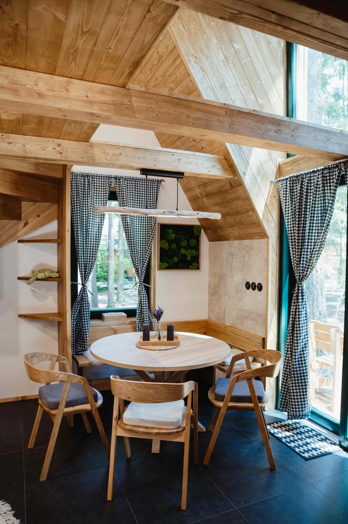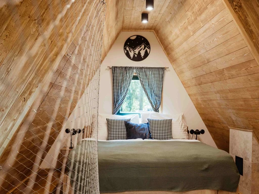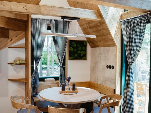 Uprostřed lesa, jen pár kroků od rybníka, stojí Chata Elske – místo, kde se snoubí pohodlí s přírodou. Je ideální pro dvě osoby nebo rodinu, které láká odpočinek bez rušivých vlivů. V patře najdete manželské lůžko, v přízemí rozkládací pohovku, nechybí plně vybavený kuchyňský kout ani krb pro chladné večery. Celý interiér se nese v alpském stylu s dominancí dřeva, což jen umocňuje útulnost celého prostoru. Ráno si můžete dopřát donášku snídaně až ke dveřím, přes den se vydat na procházky po Vysočině a večer si užít chvíle klidu v sauně na hladině nebo u ohniště na terase. Chata Elske je místo, kde se znovu nadechnete – pomalu, zhluboka a s radostí.