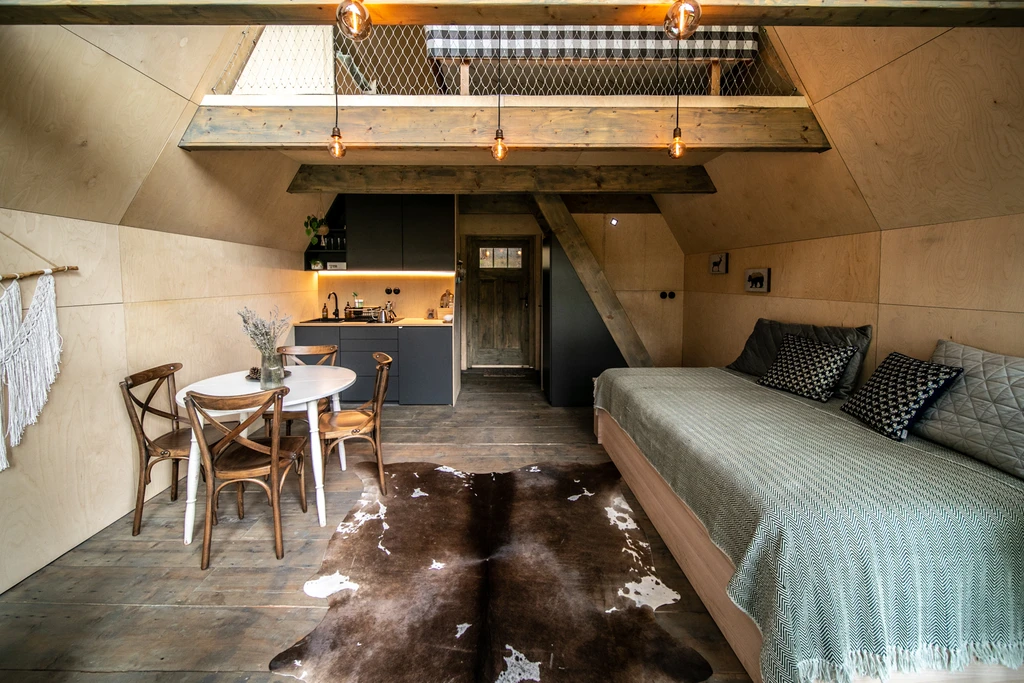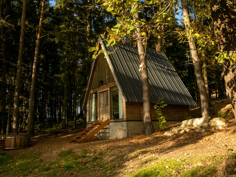 Chata Hygge je zhmotněním skandinávského přístupu k životu – klidného, pohodového a plného jednoduchých radostí. Uvnitř vás přivítají detaily, které tvoří skutečný domov: deky, měkké polštáře, kravská kůže, na které si můžete odpočinout s knihou nebo horkým kakaem v ruce. Krb dodává nejen teplo, ale i atmosféru, která zpříjemní každý den – ať venku svítí slunce, nebo padá sníh. Velká okna propojují vnitřní svět s tím venkovním a v okolí se můžete vydat na klidnou procházku, nebo se prostě jen zabalit do ticha. V Hygge se zpomaluje čas.