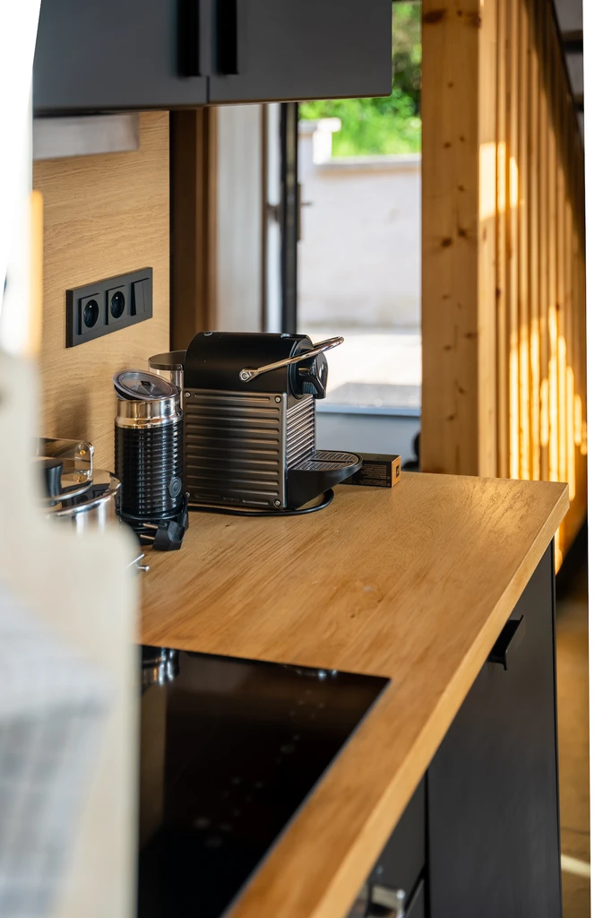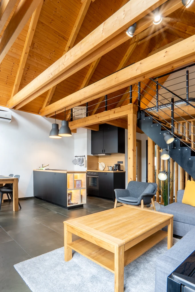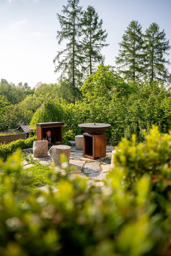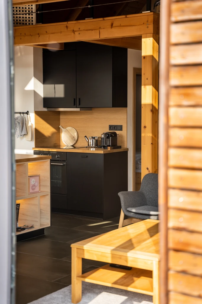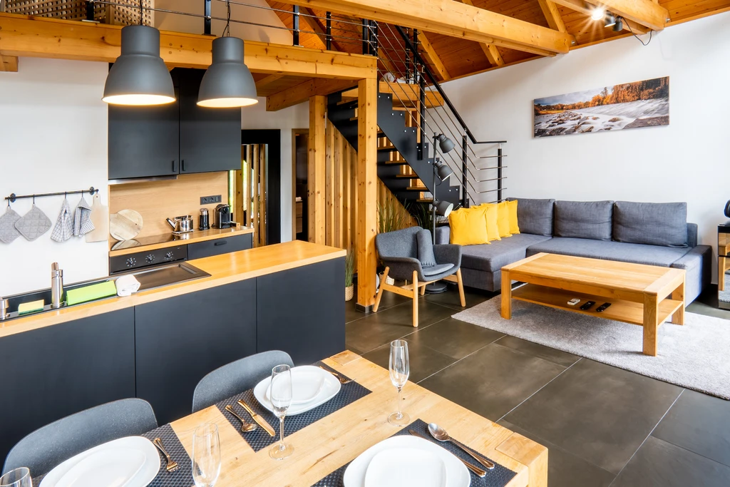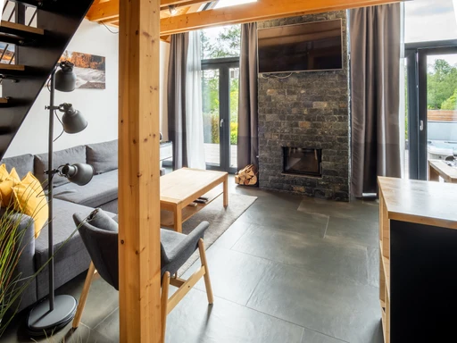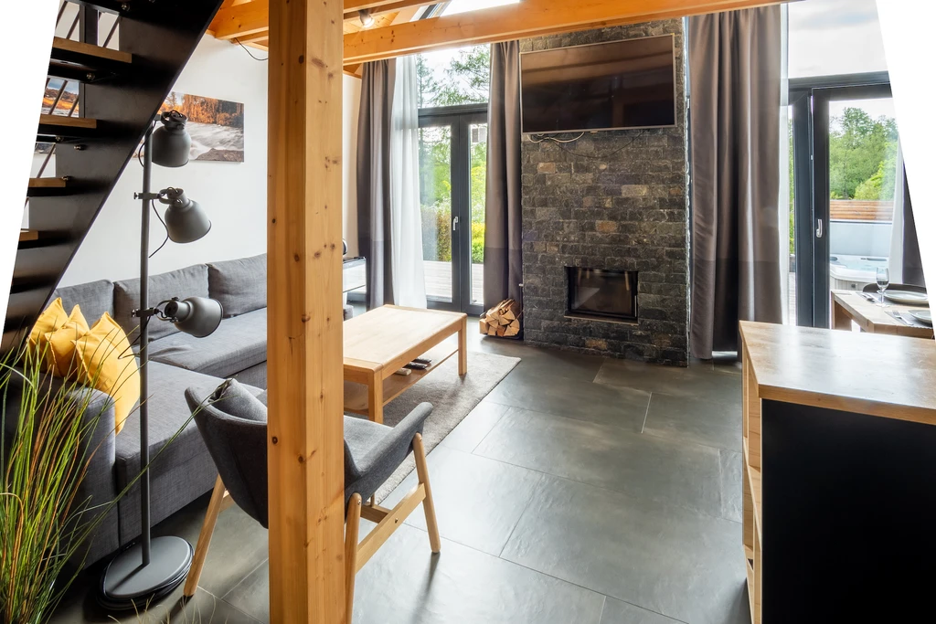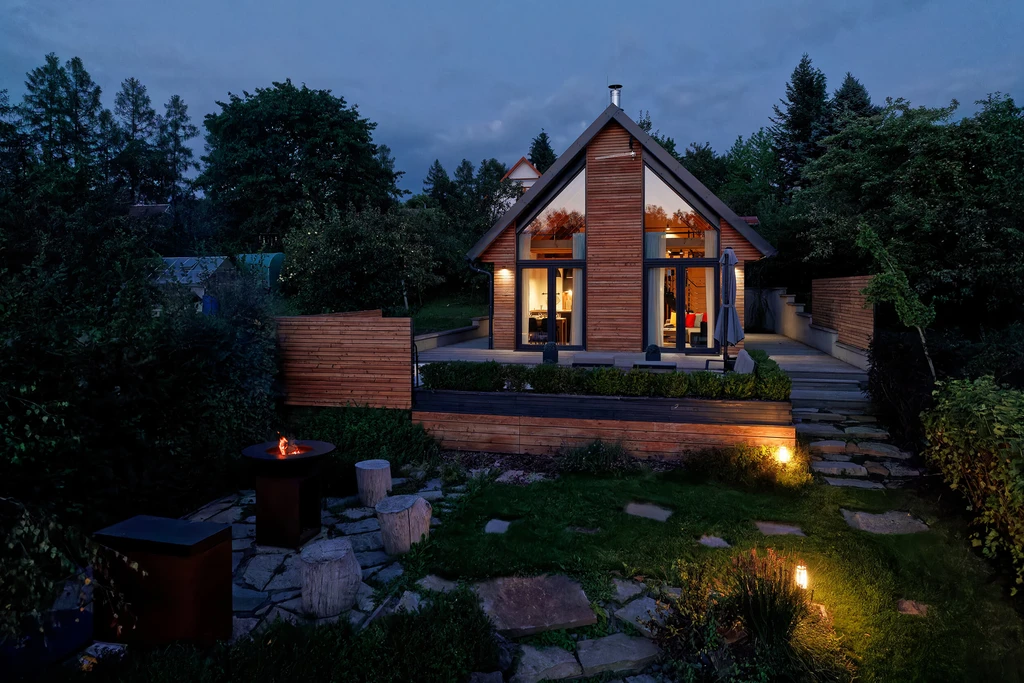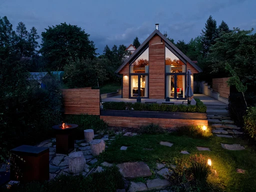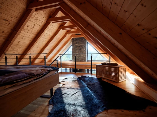 Chata Jestřáb v Hlinsku je moderní dvoupatrová chalupa zasazená do přírody na hranici Vysočiny a Žďárských vrchů. Dřevem provoněný interiér a prosklené stěny přes dvě patra zajišťují nejen spoustu denního světla, ale i nádherný výhled do zahrady a okolní krajiny. Ubytuje až šest hostů – ve vlastní ložnici, na rozkládacím gauči v obýváku a v otevřeném patře, které považujeme za nejkrásnější část celé chaty. Společné večery si můžete užít u krbu, s vínem v ruce a oblíbeným jídlem, které připravíte v plně vybavené kuchyni. Ráno vás probudí vůně kávy z Nespresso kávovaru a výhledy, na které jen tak nezapomenete. Chata Jestřáb je perfektní volbou pro romantiku i rodinný útěk.