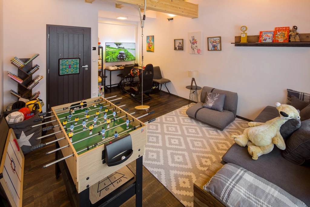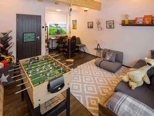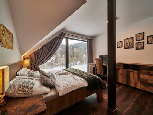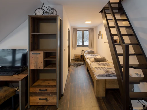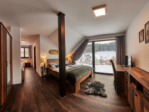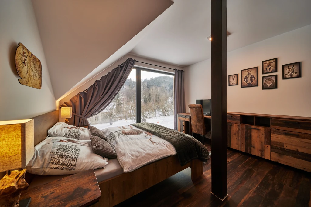 V malebné vesnici Libeč u Trutnova stojí moderní chata pro až 16 hostů ve čtyřech čtyřlůžkových pokojích s vlastní koupelnou, dvěma mezonetovými. Nabízí obývák s krbem, velký jídelní stůl, kuchyň, hernu (fotbálek, x-box, deskovky) a relaxační podkroví.