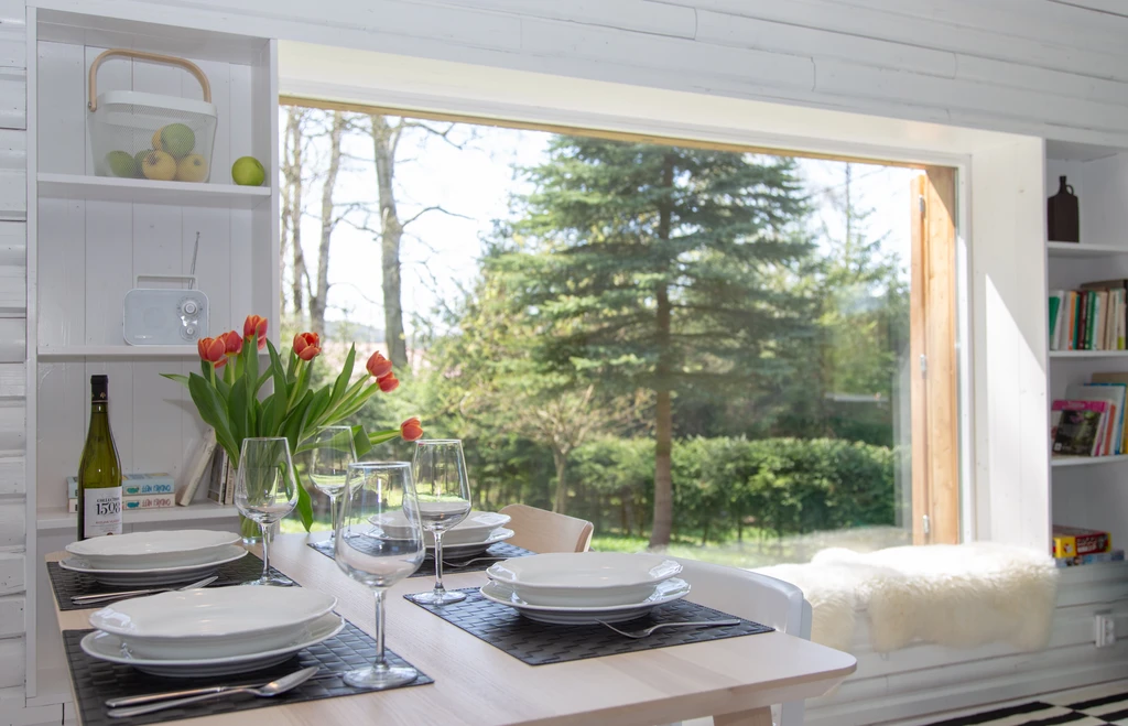 Originálně zrekonstruovaný interiér v severském stylu, výhledy do přírody, ticho a klid, to je Chata Podlesí. Neobyčejná chata na neobyčejném místě.