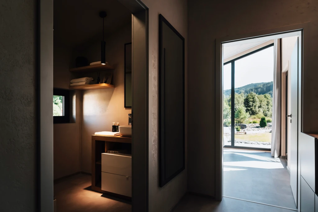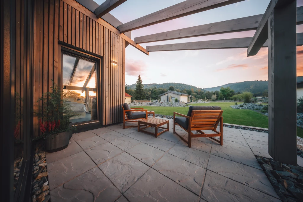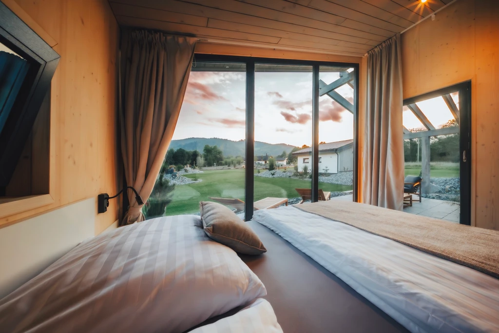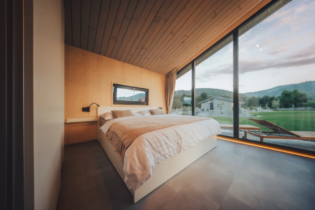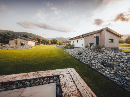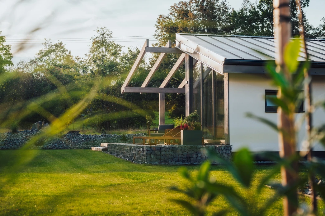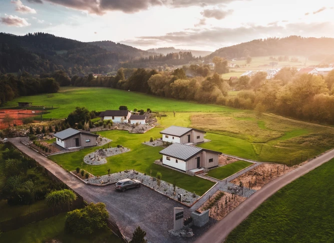 Dominantou každého domu je prostorná terasa se zahradou a výhledem do zeleně. Ať už přijedete sami, v páru nebo s přáteli, naše domy jsou ideální pro odpočinek, základnu pro dobrodružství, nebo kancelář s nejlepším výhledem.