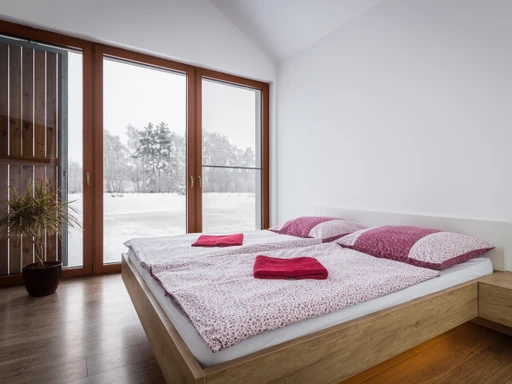 Tenhle dům na břehu rybníka je útočiště pro všechny, kdo touží na chvíli zmizet z ruchu světa a zhluboka se nadechnout. Leží uprostřed přírody na Vysočině, kde se čas měří západy slunce a rytmem vln. Panoramatická terasa volá po ranní kávě s nohama nahoře i letním skoku do vody. A v zimě? Teplý čaj, deka, červené víno a výhled na zamrzlou hladinu – čistá poezie.