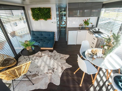 Ema, Marta a Lili jsou tři moderně vybavené a prostorné hausbóty s chytře navrženým interiérem a exteriérem. Léto i zima jsou tu nádherné. Všechny plovoucí dámy vás ohromí velkorysým prostorem (80 metrů čtverečních), ale hlavně přední krytou a velkou střešní terasou, které vybízejí ke chvilce s knížkou nebo grilování.