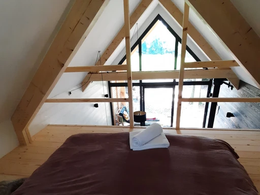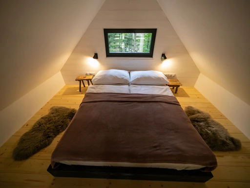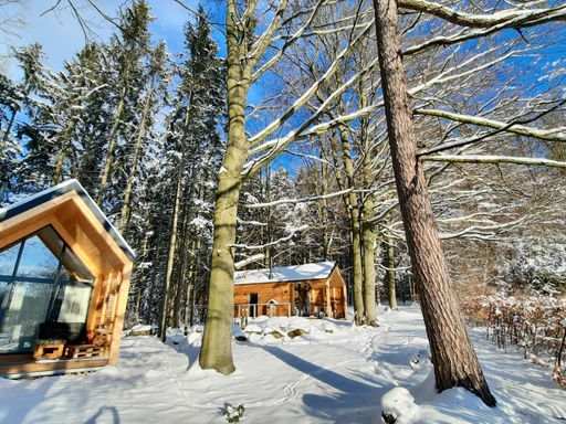 Nedaleko řeky Sázavy, obklopeny lesem a tichým šumem korun stromů, stojí dva domky zasazené do přírody s citem a úctou k místu. Větší z nich je ideální pro rodinu – nabízí útulný interiér, krb a terasu s výhledem do zeleně. Menší domek je jako stvořený pro páry, které ocení vanu pro dva, ložnici s krbem a klidnou atmosféru s výhledem do lesa. Oba domky jsou plně vybaveny – nechybí podlahové topení, kuchyň ani pohodlné postele. V okolí můžete objevovat kouzlo Sázavy, ochutnat vodu ze studánky nebo využít zázemí nedalekého hotelu Kouty, kde vás čeká nejen skvělé jídlo, ale i wellness či sportovní aktivity. Stačí si zabalit to nejnutnější – zbytek už na vás čeká na místě.