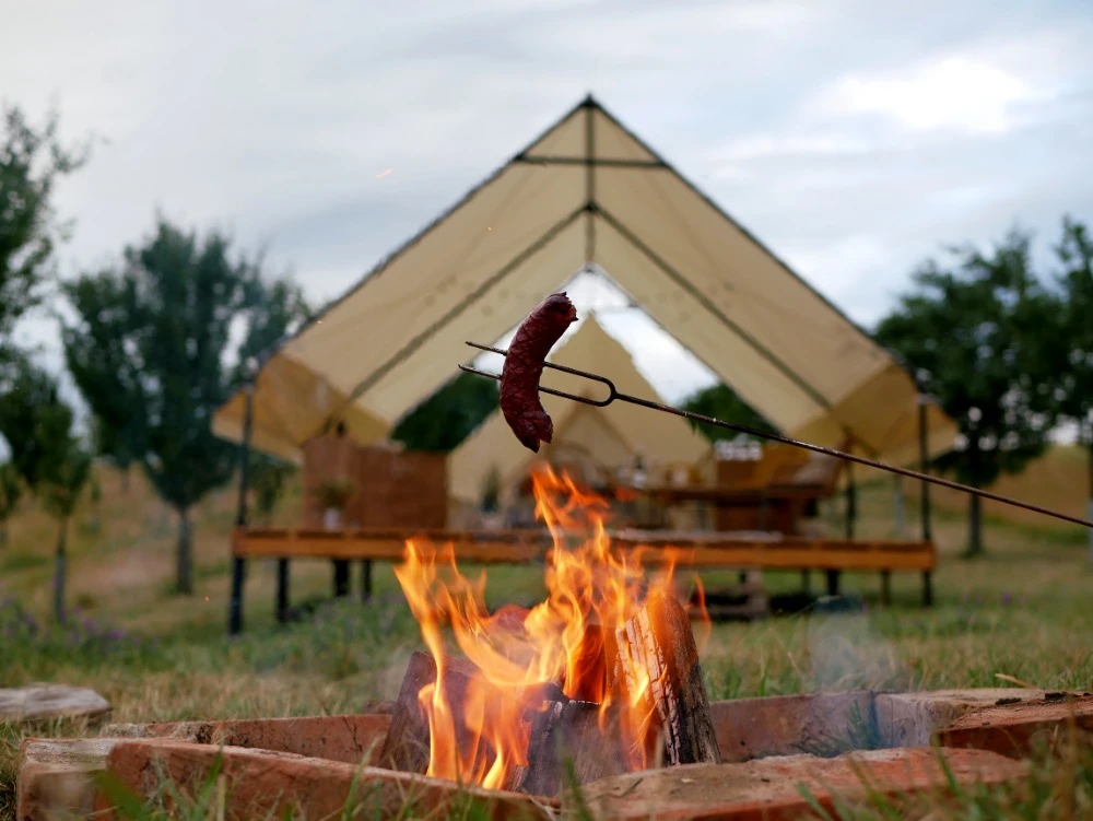 Hlavní je pro nás soukromí, proto náš glamp Moravské Toskánsko v trnkových sadech nabízí naprostý klid bez elektřiny. Lokalita je tajná a budeme rádi, když k nám vyrazíte i s mazlíčkem. Spolupracujeme se dvěma moravskými vinařstvími, která nám vozí svá vína a která u nás můžete ochutnat.
