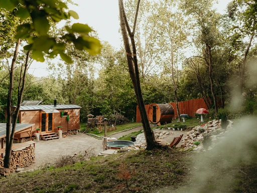 Kouzelné útočiště uprostřed přírody s privátním wellness – horkou koupelí, finskou saunou a útulnou čajovnou, kde si v tichu lesa vychutnáte šálek čaje. Maringotka s krbem a klimatizací nabízí dokonalý klid a romantiku. Domácí mazlíčci jsou vítáni.