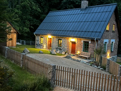 Jedlový potok v Josefově Dole není obyčejné ubytování. Je to dům s pamětí, postavený z kamene a cihel, který kdysi sloužily sklářům. Citlivá rekonstrukce zachovala jeho duši – a doplnila ji o promyšlený interiér, kde každé světlo, tkanina i kus dřeva zapadá přesně tam, kam má.
