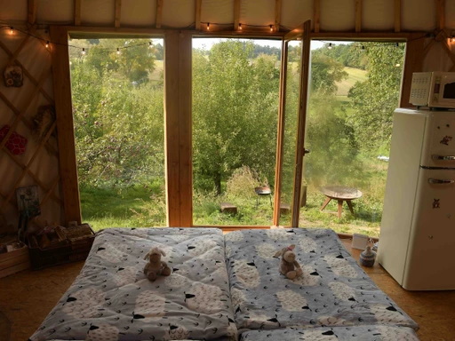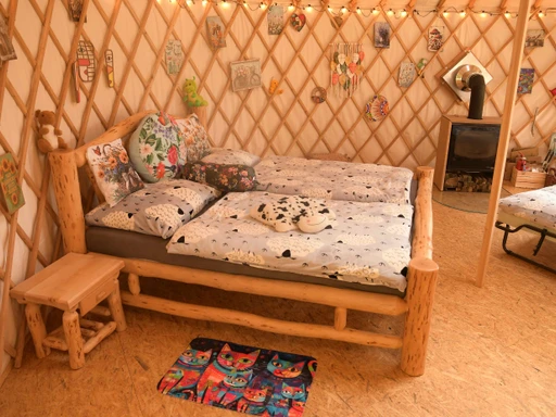 Klíčky od jurty jsou schované na statku - sdělíme podrobnosti. Pokud není jurta pronajatá a je uklizená, je možné domluvit dřívější příjezd.