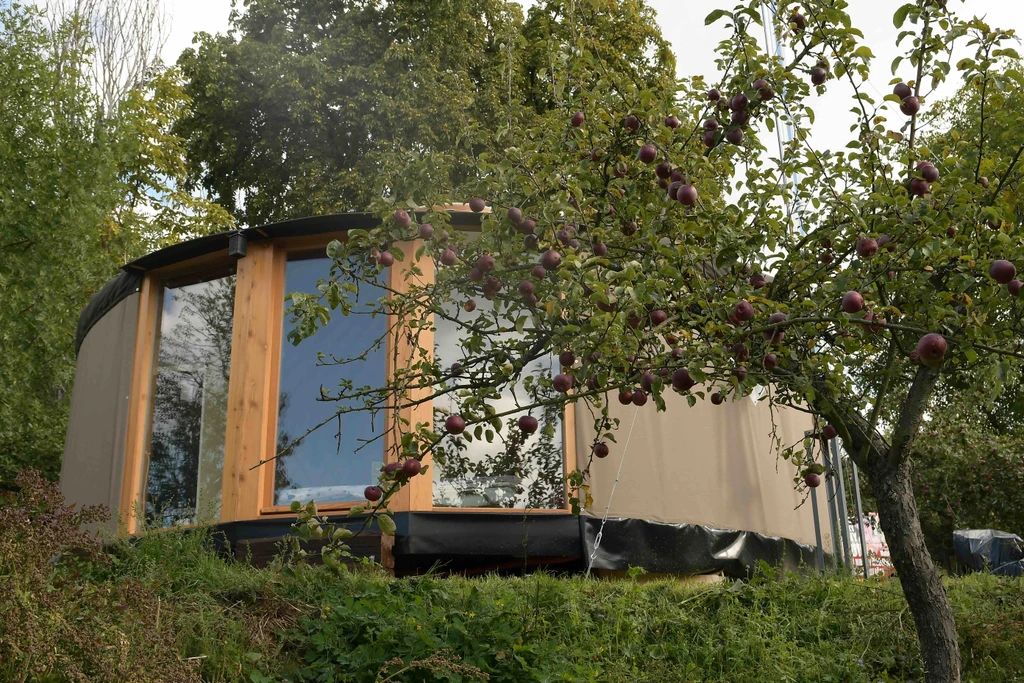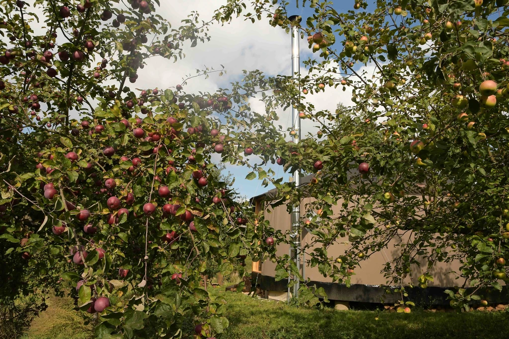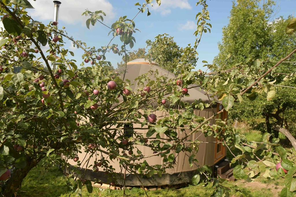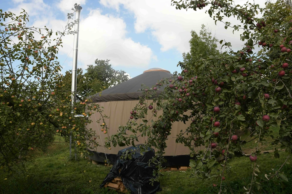 Jurta hnědá v jablečném sadu