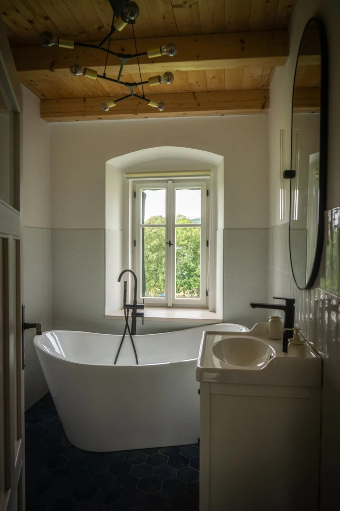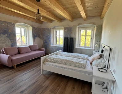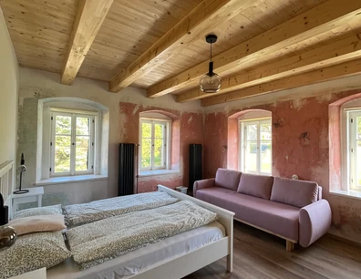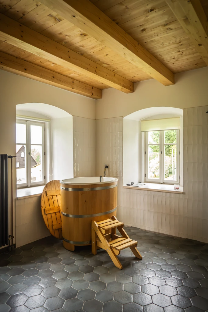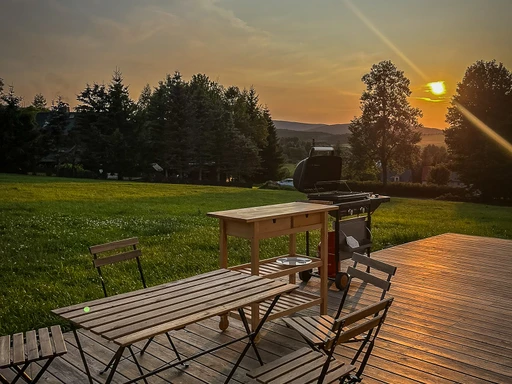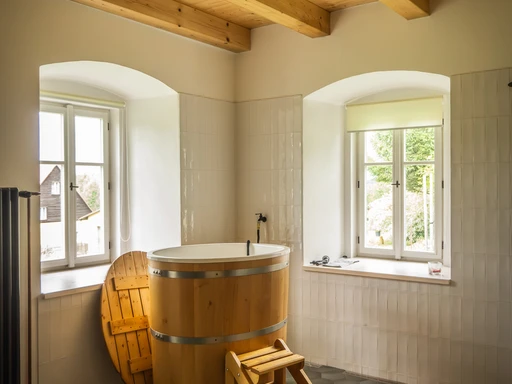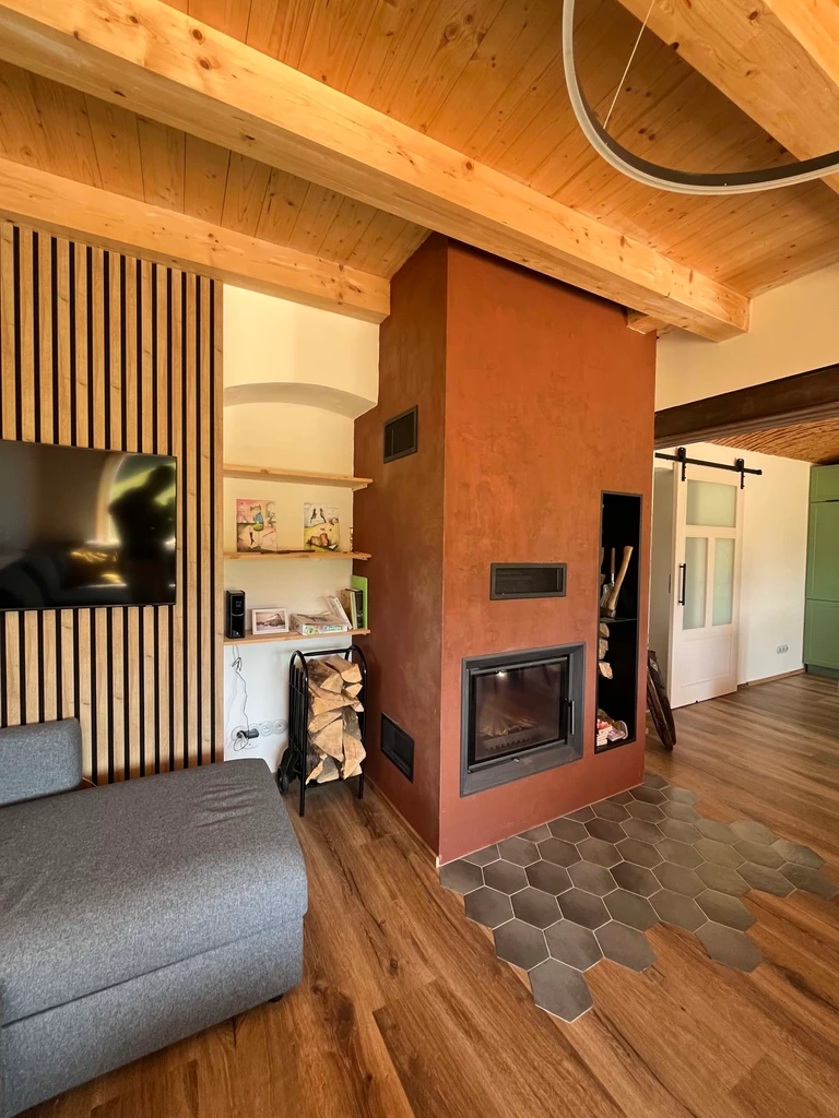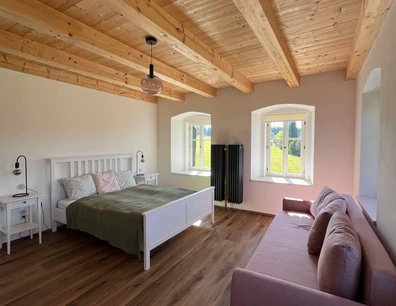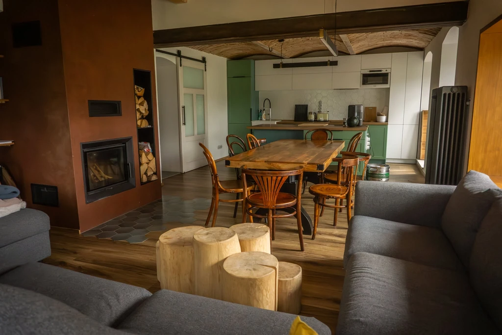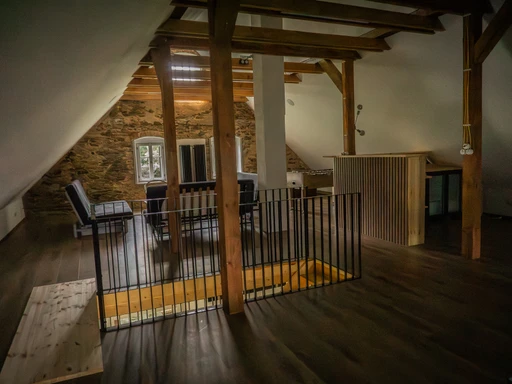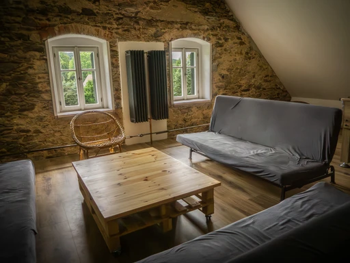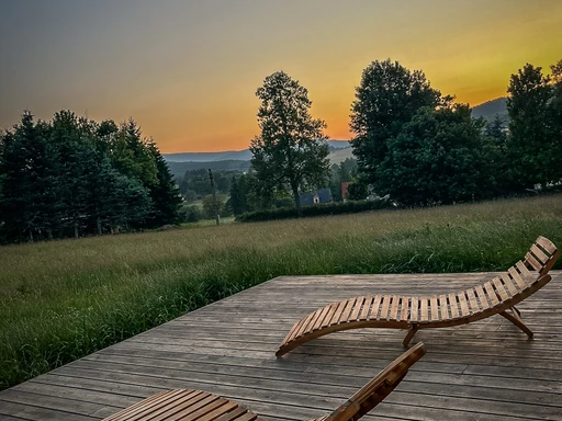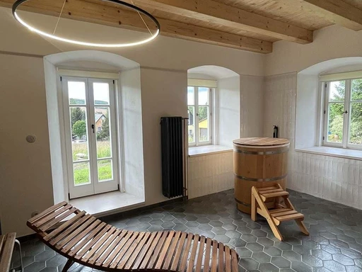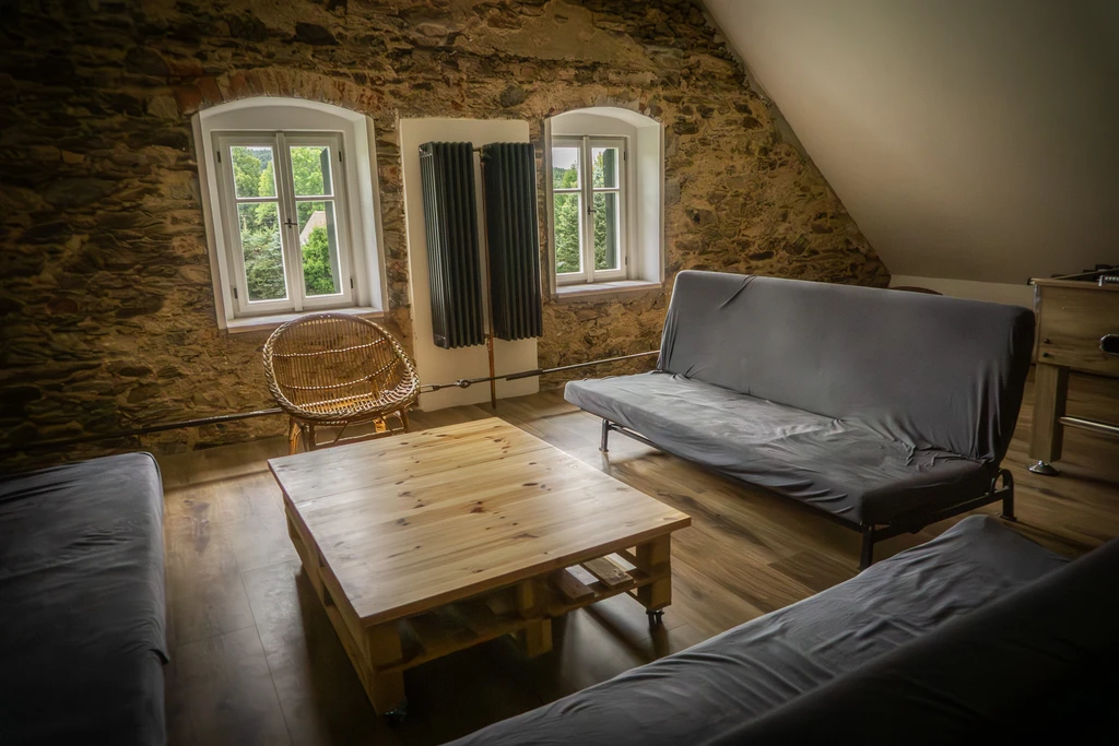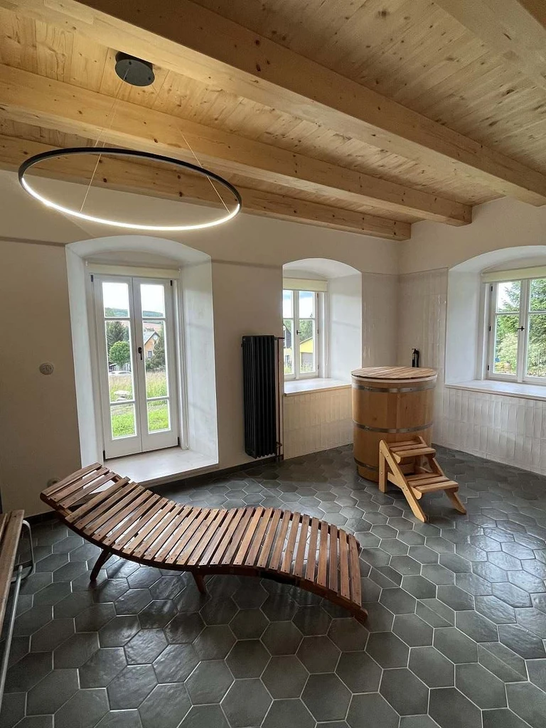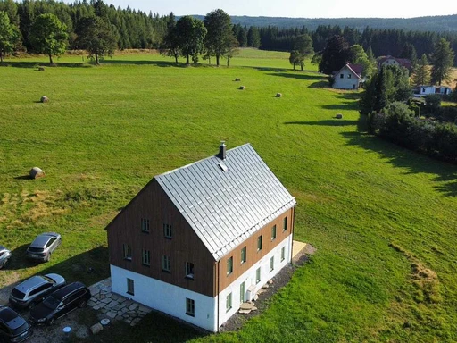 Chata Konírna v srdci Krušných hor, v obci Kovářská, je ideálním místem pro odpočinek i zábavu. Ubytuje až 18 hostů v pěti útulných ložnicích a propojuje kouzlo tradiční horské architektury s moderním komfortem. V přízemí najdete prostorný obývací pokoj s krbem, kuchyni s jídelnou a přímý vstup na terasu, kde si v létě užijete grilování. Nechybí ani sauna s prostornou odpočívárnou a ochlazovacím sudem. Dále se v přízemí nachází toaleta a koupelna se sprchovým koutem a místnost technického zázemí. V patře jsou čtyři ložnice a koupelna s vanou a záchodem, v podkroví pak herní a zábavní koutek s barem a chladící pípou, stolním tenisem a fotbálkem. Díky velkým oknům můžete večer pozorovat laně na louce a během dne vyrazit na výlety – kousek odtud leží Klínovec se sjezdovkami i cyklo traily a okolí láká na turistiku i běžky. Konírna je skvělá pro rodiny, partu přátel i firemní akce a každý si tu najde to své.