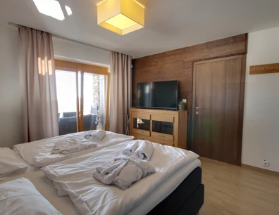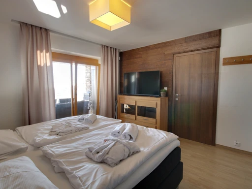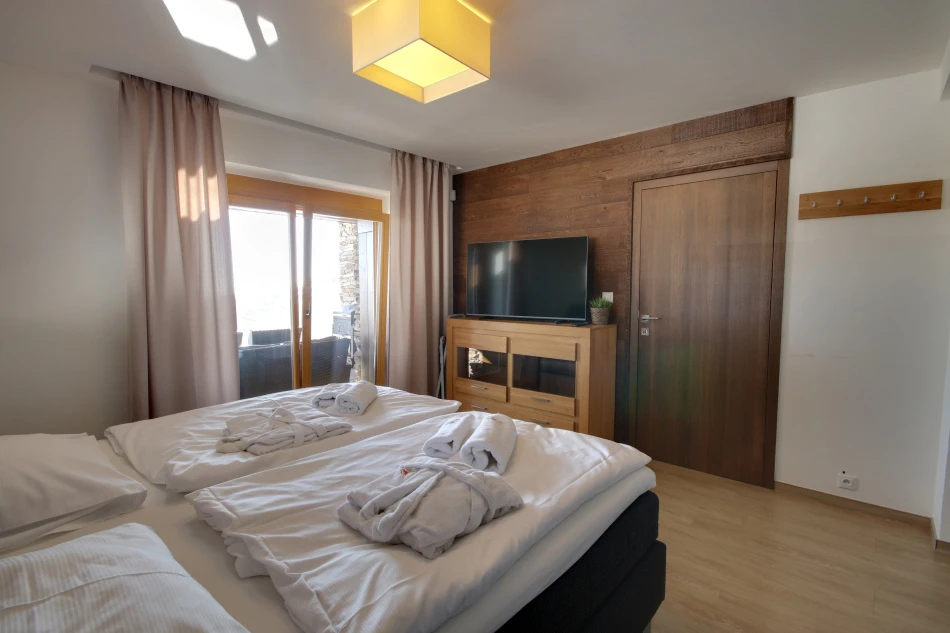 Luxusní horský apartmán s privátním wellness a výhledem na sjezdovku. Spojení špičkového designu, pohodlí a jedinečné polohy ocení hlavně ti, kdo hledají opravdu výjimečný zážitek na horách.