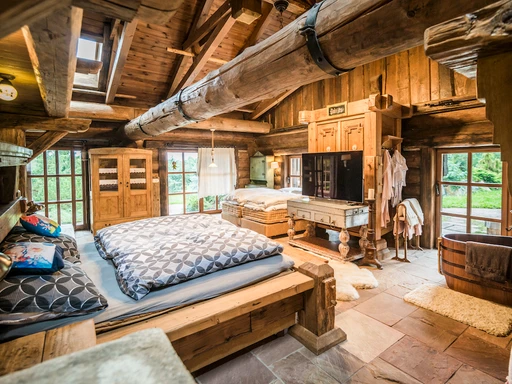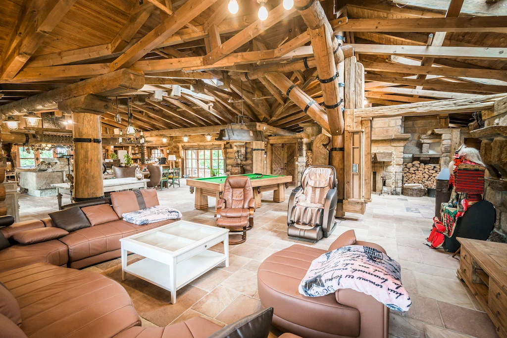 Jen málokdy narazíte na výjimečné místo, které vás doslova přenese do jiného světa – v tomhle nádherném srubu je to možné. Voňavé masivní dřevo a velkorysý obytný prostor s krbem propojený s kuchyní i jídelnou vám dopřeje atmosféru, která je zároveň luxusní i útulná. Je tu spousta místa k posezení a k vašemu pohodlí nechybí kulečník, kávovar na zrnkovou kávu ani přístup na terasu se soukromou vířivkou.