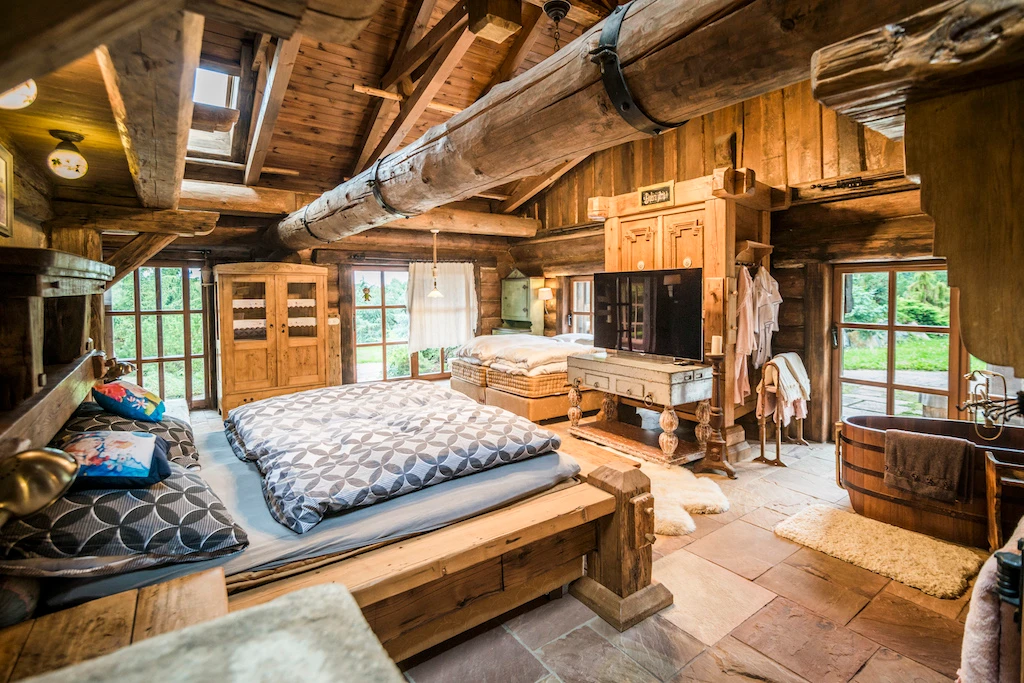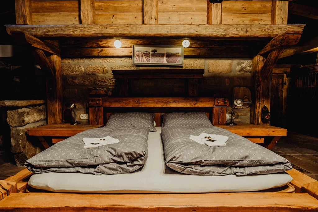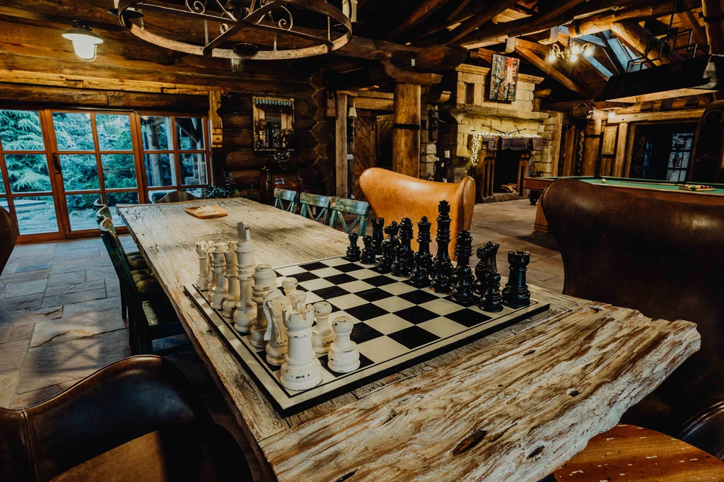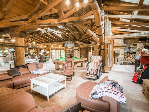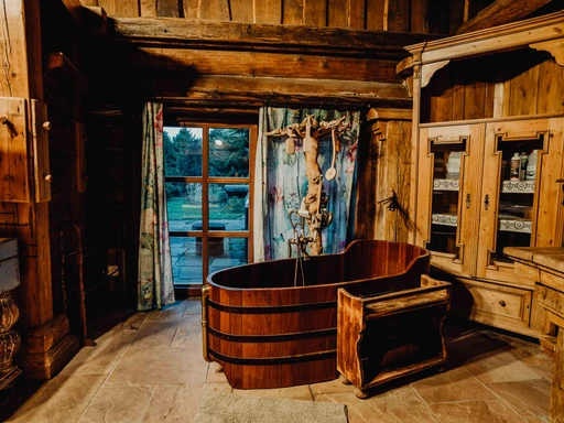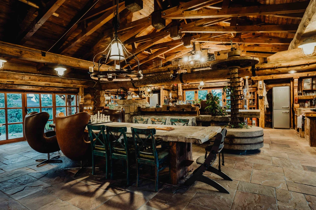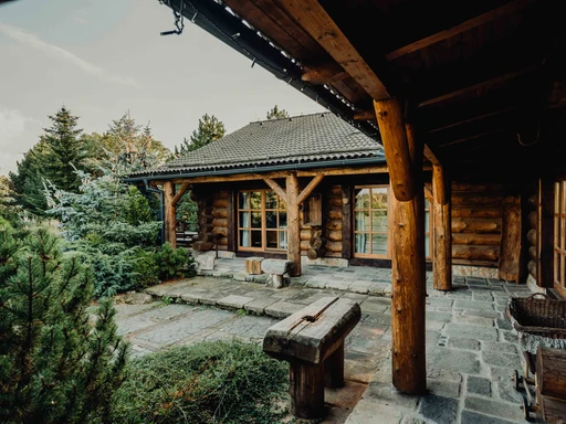 Jen málokdy narazíte na výjimečné místo, které vás doslova přenese do jiného světa – v tomhle nádherném srubu je to možné. Voňavé masivní dřevo a velkorysý obytný prostor s krbem propojený s kuchyní i jídelnou vám dopřeje atmosféru, která je zároveň luxusní i útulná. Je tu spousta místa k posezení a k vašemu pohodlí nechybí kulečník, kávovar na zrnkovou kávu ani přístup na terasu se soukromou vířivkou.