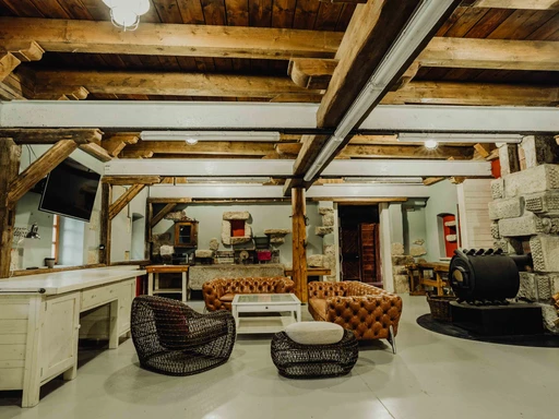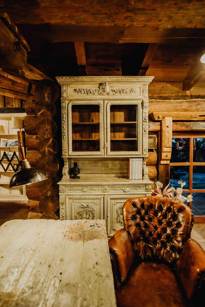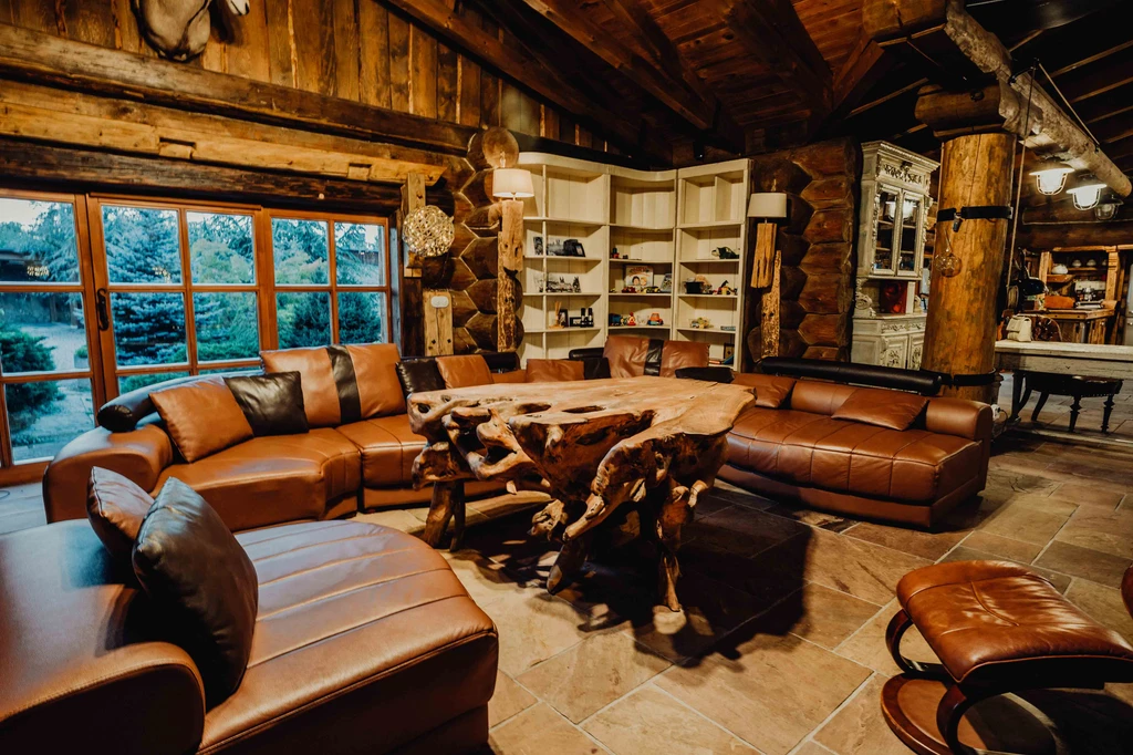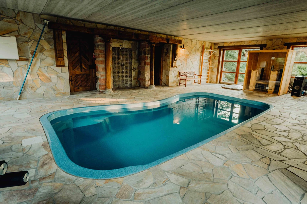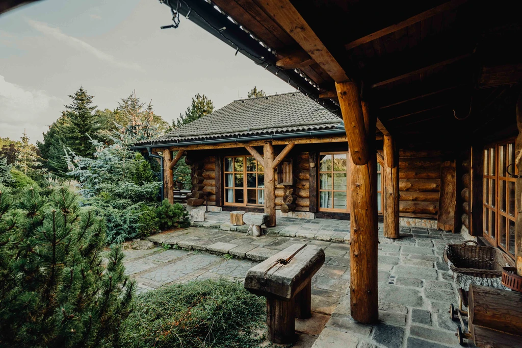 Srub, kde se setkává luxus s domácí pohodou a vůní dřeva. Velký obývák s krbem, kulečník, vířivka na terase a samostatný ateliér – ideální místo pro ty, kdo touží po klidu, prostoru a stylovém útočišti v přírodě.