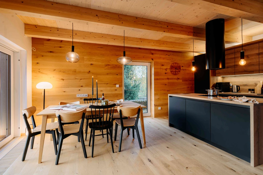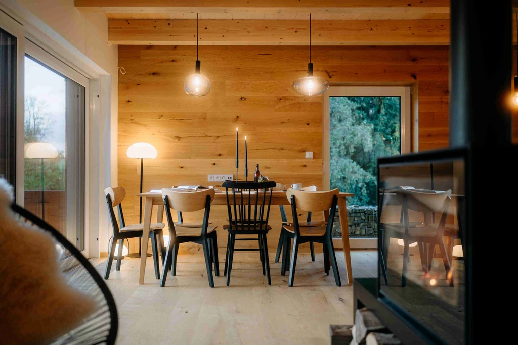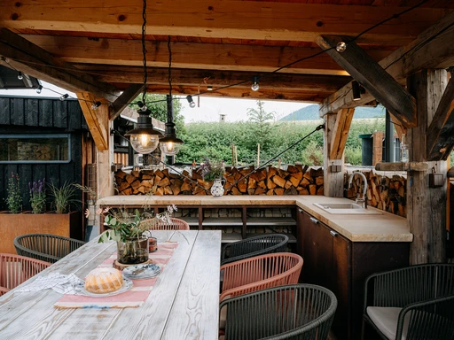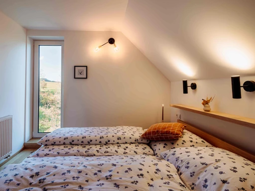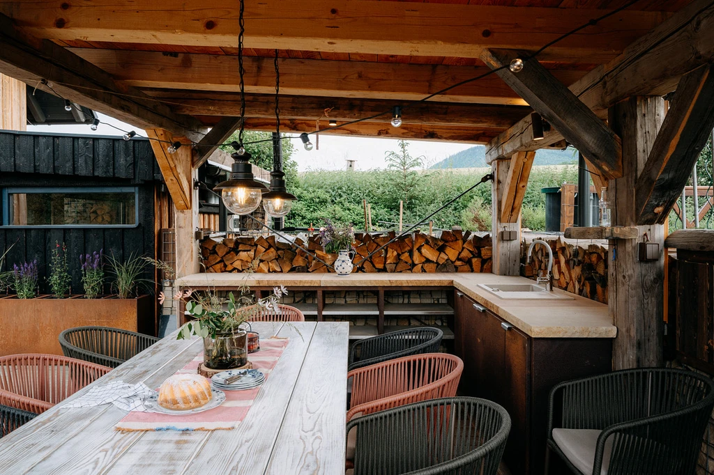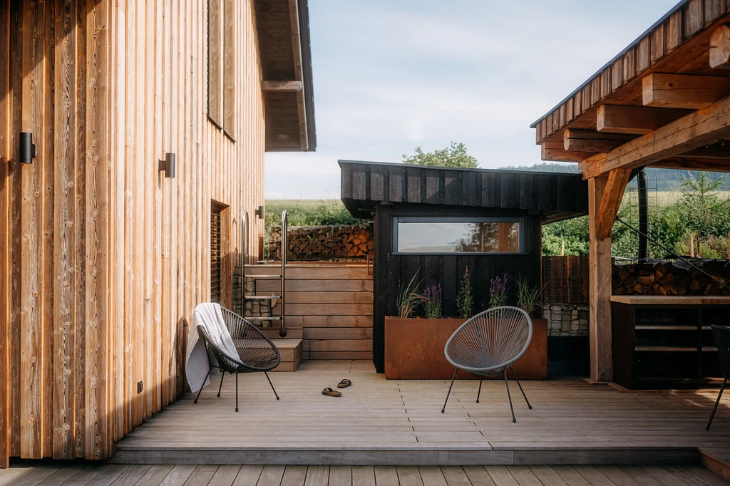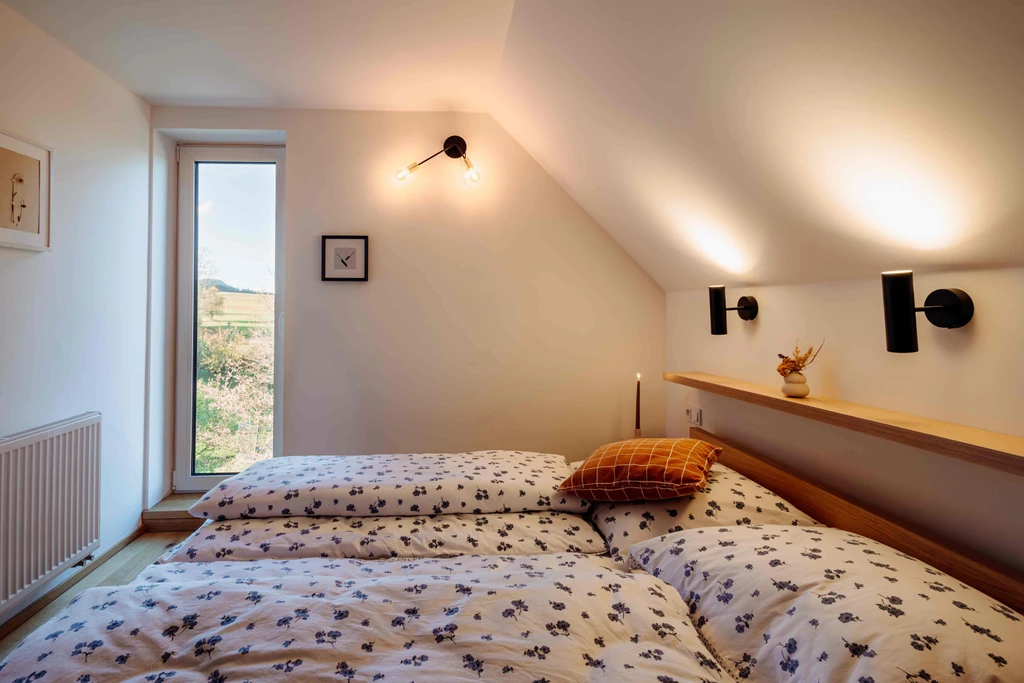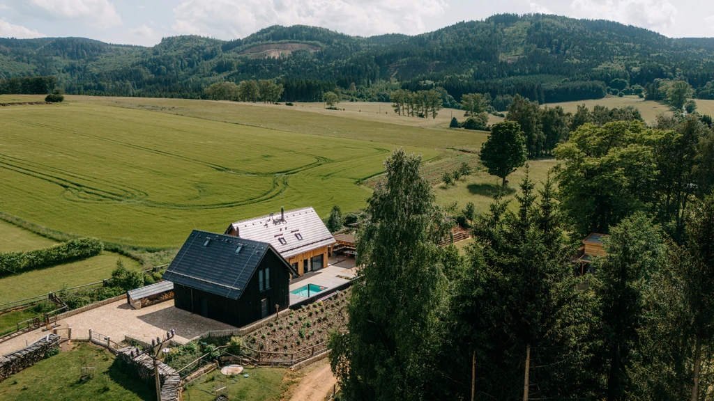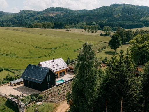 Malá Venkovanka se ukrývá v tiché části Broumovska, kde končí Česká republika a začíná pocit svobody. Chalupa stojí přímo pod majestátní horou Korunou a nabízí naprostý klid – druhá chalupa v areálu je totiž zatím neobydlená. Těšit se můžete na tři ložnice, dvě koupelny, útulný obývací prostor s krbem a prosklenými dveřmi vedoucími na prostornou terasu. Ta je zastřešená, vybavená venkovní kuchyní a grilem, a nabízí výhledy na hory i potůček na kraji pozemku. V létě se v prostoru mezi domem a terasou plynule prochází a v deštivých dnech si klidně posedíte pod střechou s kávou a výhledem. Okolí láká k výletům po Broumovských stěnách, za přírodou i tichem.