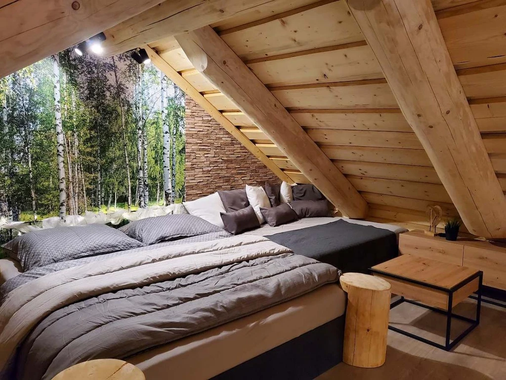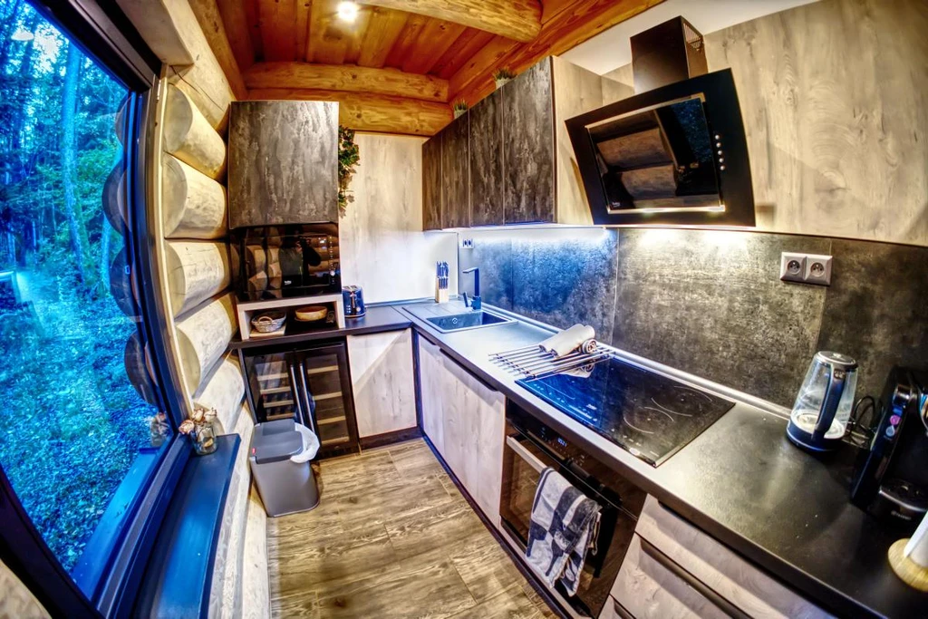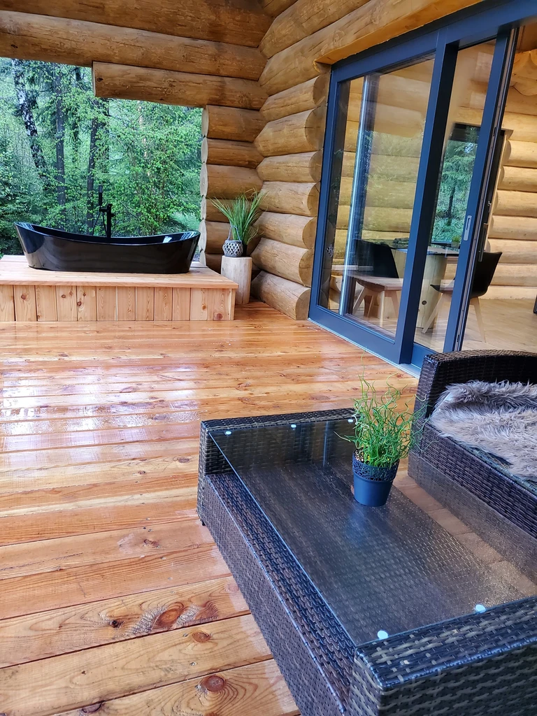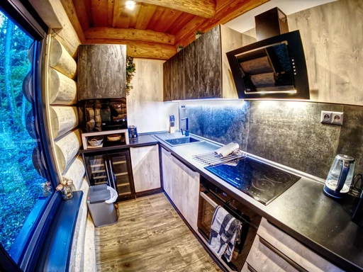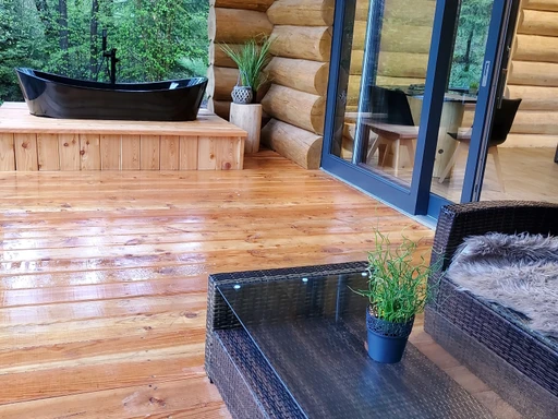Na okraji vesničky Kuří v Novohradských horách najdete malý srub KuŘíp, který je ideálním místem pro páry nebo malou rodinu, co touží po soukromí a klidu. Vysoký strop hlavní místnosti a prosklené stěny dodávají prostoru vzdušnost a propojení s přírodou. Večery si zpříjemníte posezením u krbu nebo domácím kinem. Hned za krbem se ukrývá privátní wellness zóna s infrasaunou, vířivkou a pohodlnými lehátky. Srub nabízí komfortní zázemí s vlastní koupelnou a přímým vstupem na terasu. KuŘíp vám poslouží jako perfektní základna pro výlety – ať už do Českého Krumlova nebo k rybníkům Třeboňska.