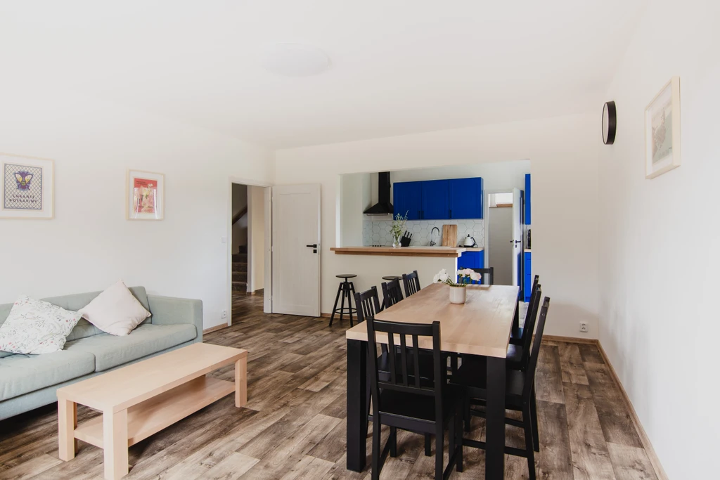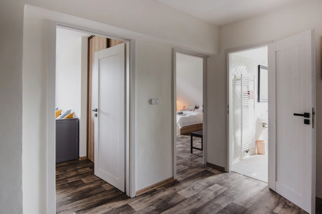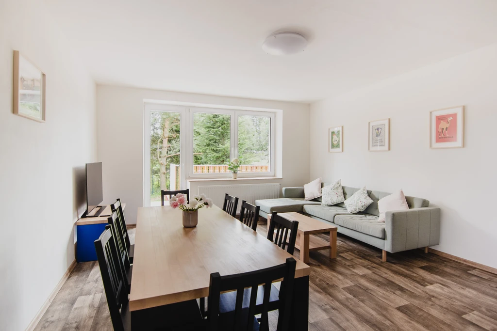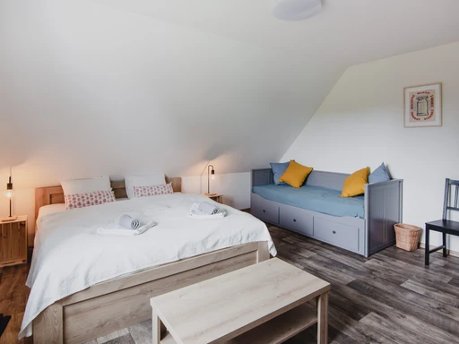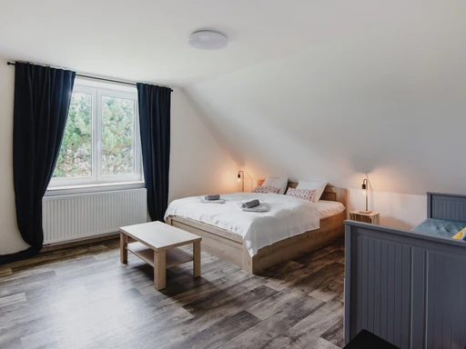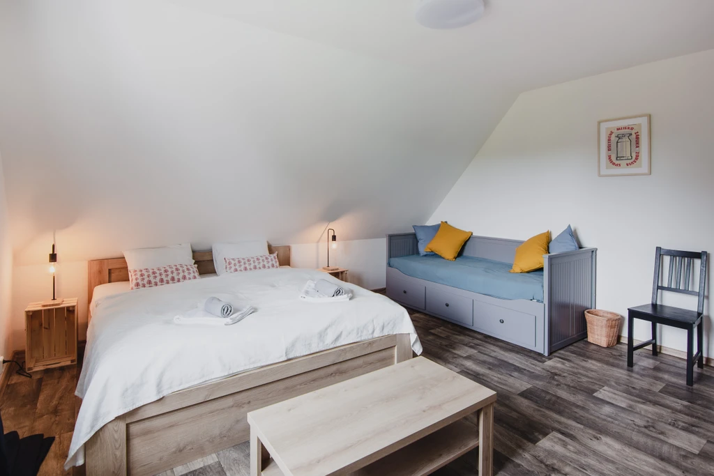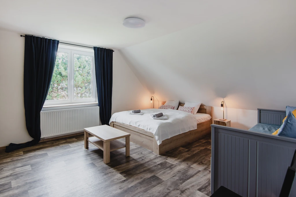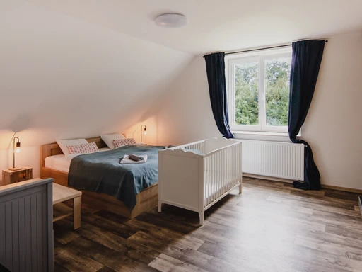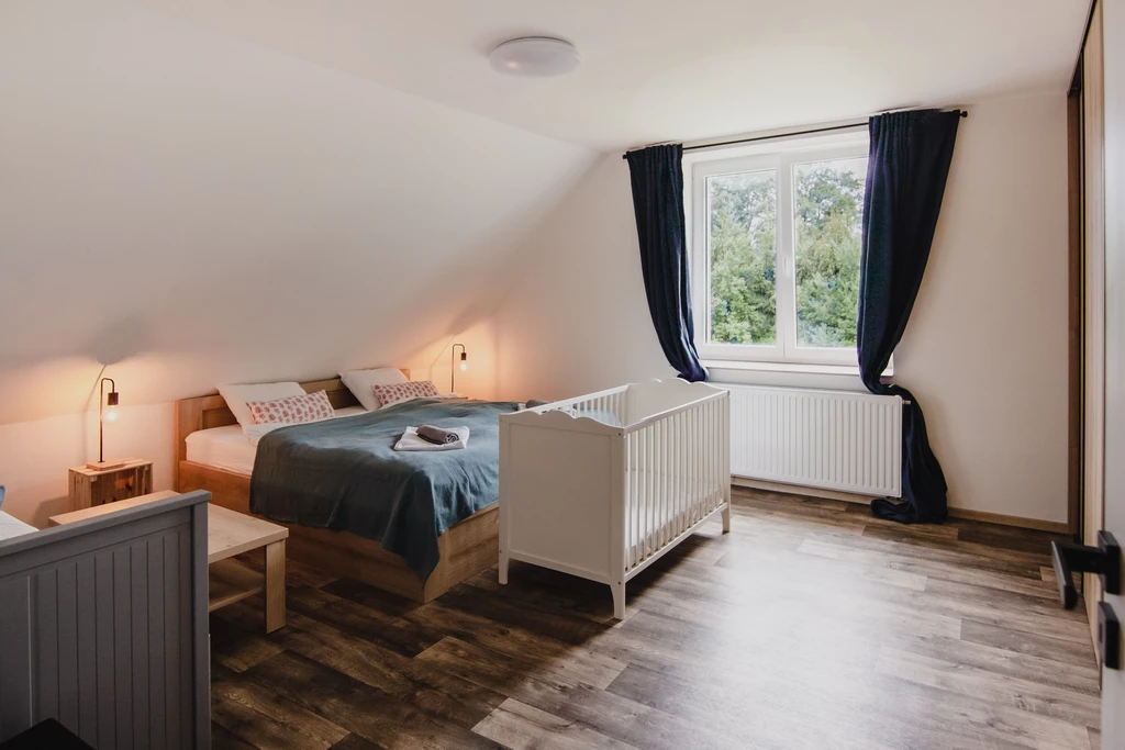 Každá ze dvou chalup poskytuje ubytování pro 2 až 10 osob ve tří ložnicích. Chalupy jsou zrcadlově totožné, spojené sklepem a dohromady nabízejí 20 lůžek. K objektu náleží rozlehlý pozemek zaručující klid, soukromí a volný pohyb vašich ratolestí. V letním období jistě oceníte například blízkost vodní nádrže Slezská Harta, kde se můžete vykoupat, projet na loďce, půjčit paddleboard nebo vyrazit na tůru kolem přehrady. V zimě to pak máte půl hodiny do známých ski areálů Čerťák, Myšák či Karlov. Disponujeme infrasaunou i venkovní finskou saunou. Také tu najdete čerpadlo na pivní sud.