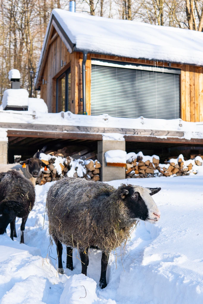 Modřínem vonící domek nabízí pohodlí, klid a bonus v podobě oveček a lam. Ideální místo pro rodiny nebo partu přátel, kteří chtějí zpomalit a užít si pobyt v přírodě a se zvířaty - ideální zábava pro celou rodinu.