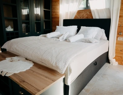 Děti plné energie a vy přitom toužíte po klidu? Modřínek zvládne obojí. Stylový domek s vlastními ovečkami, koupacím sudem a přímým přístupem k řece. Pohodlí, příroda a malý kousek farmářského snu – to vše jen kousek od civilizace.