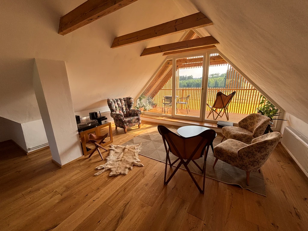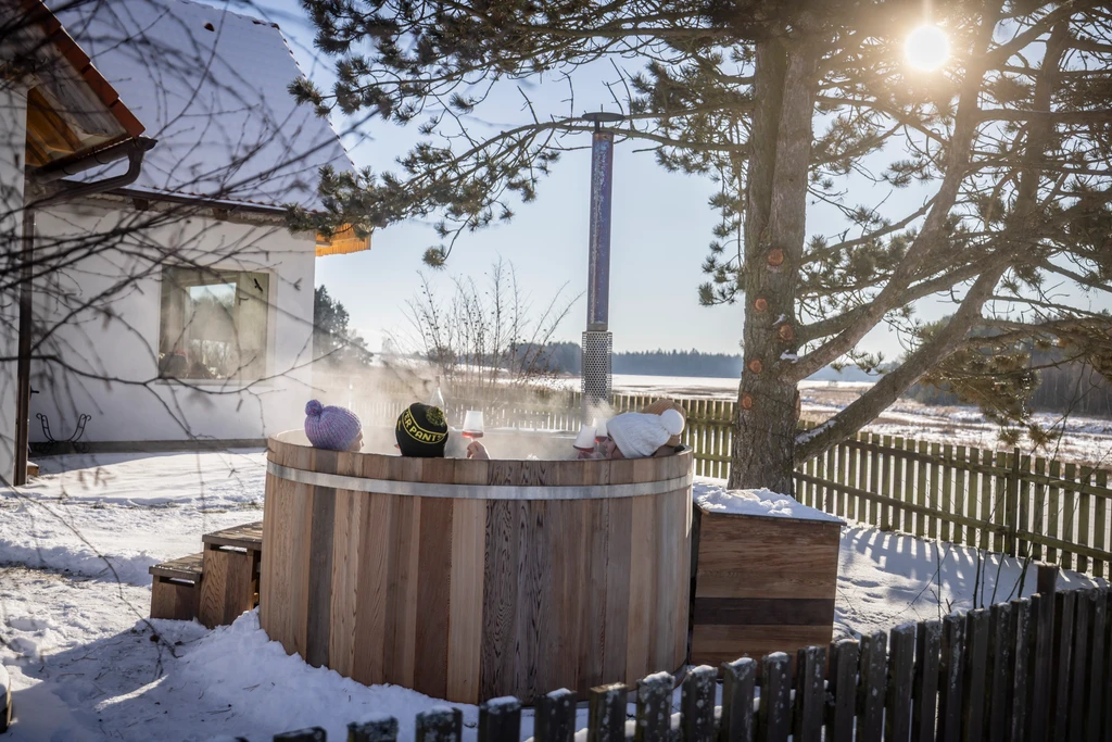 Útulný apartmán v Jemčinských lesích u rybníka Holná nabízí zimní zahradu, kde si můžete dopřát snídani s výhledem na srnky, volavky či mořské orly. Čeká vás relax v cedrovém sudu s vířivkou, zahrada s možností grilování a klid, který si zamilujete. Okolí je ideální pro lesní procházky, koupání v rybnících a pískovnách, houbaření nebo výlety na Červenou Lhotu, do Jindřichova Hradce či Třeboně. Místo jako stvořené pro romantiku, odpočinek i inspirativní home office. Pobyt je možný i se psem. Prostor, kde vás nic nebude rušit, kde můžete tvořit, rozjímat, nebo prostě jen tak být.