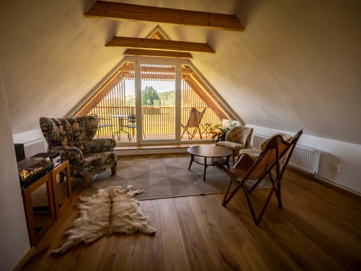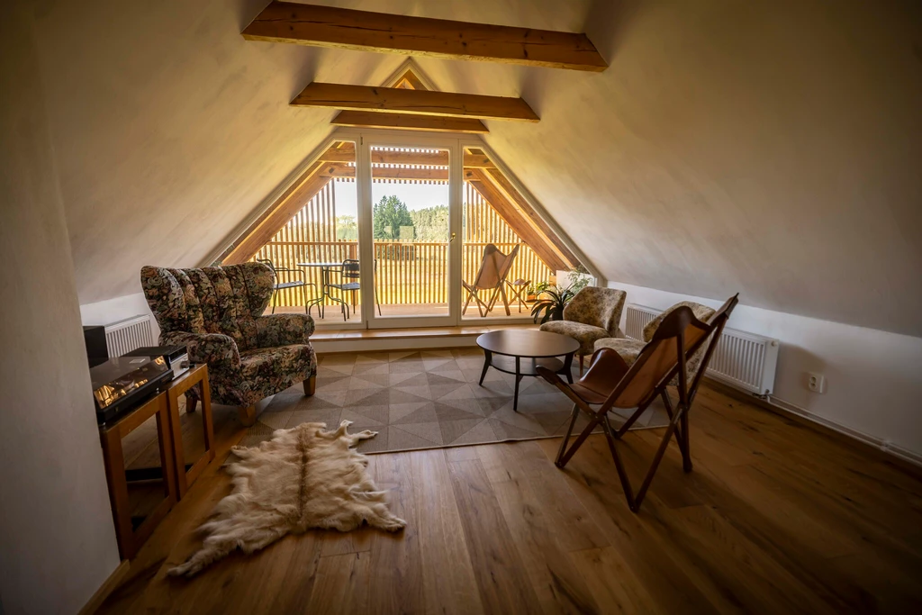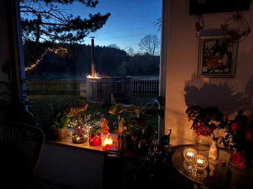 Útulný apartmán v Jemčinských lesích u rybníka Holná nabízí zimní zahradu, kde si můžete dopřát snídani s výhledem na srnky, volavky či mořské orly. Čeká vás relax v cedrovém sudu s vířivkou, zahrada s možností grilování a klid, který si zamilujete. Okolí je ideální pro lesní procházky, koupání v rybnících a pískovnách, houbaření nebo výlety na Červenou Lhotu, do Jindřichova Hradce či Třeboně. Místo jako stvořené pro romantiku, odpočinek i inspirativní home office. Pobyt je možný i se psem. Prostor, kde vás nic nebude rušit, kde můžete tvořit, rozjímat, nebo prostě jen tak být.