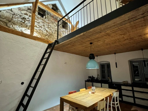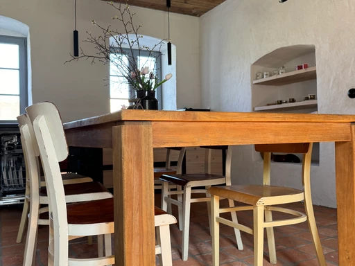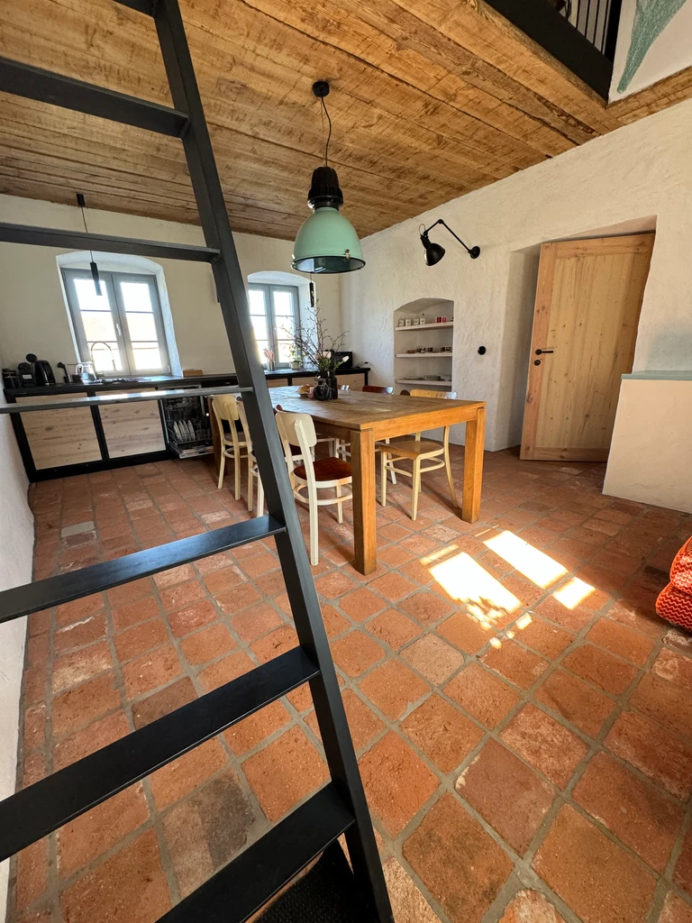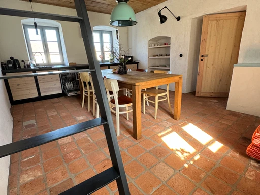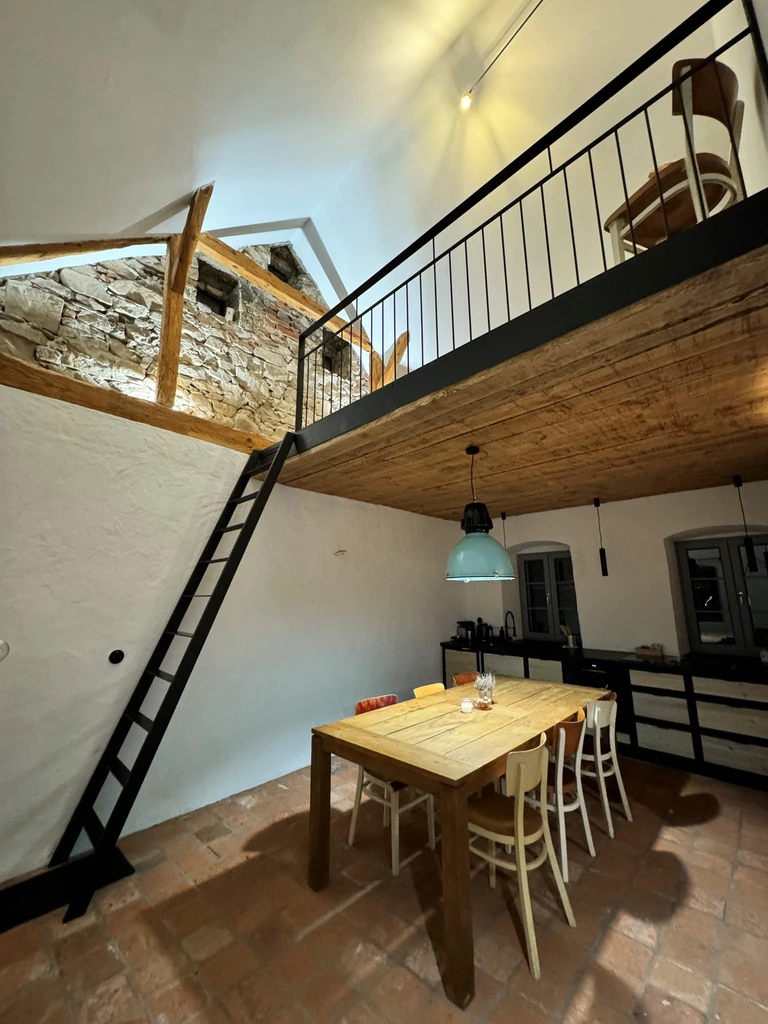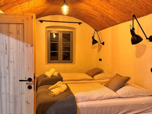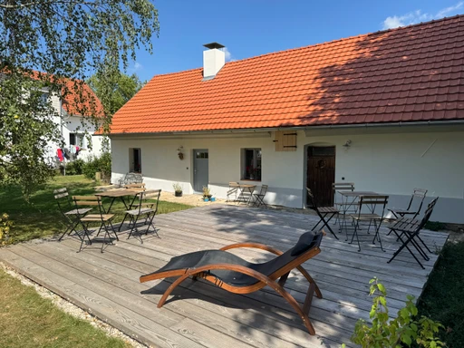 Na konci vesnice, v zahradě plné stromů, stojí tradiční jihočeské stavení ze 17. století. Prošlo citlivou rekonstrukcí a dnes nabízí stylové ubytování pro dva až čtyři hosty. Najdete tu samostatnou ložnici s manželskou postelí a otevřenou mezonetovou ložnici se dvěma pohodlnými futony.