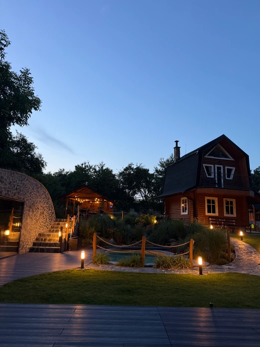 Malebný resort ukrytý v srdci přírody, kde se spojuje kouzlo pohádky s komfortem moderního ubytování. Hlavní dominantou areálu je pohádková chaloupka, která vás okouzlí svou útulnou atmosférou a rustikálním stylem. Pro milovníky netradičního bydlení nabízíme také stylové glamping chatky, které propojují pohodlí hotelového ubytování s krásou života venku. Náš resort je ideálním místem pro rodinnou dovolenou, pobyt s přáteli, nebo tématické pobyty jako jsou jóga retreaty, workshopy, meditační seance. Klidné okolí, čistý vzduch a přírodní scenérie vybízejí k relaxaci a aktivnímu odpočinku. Součástí areálu je slaný bazén, finská sauna, pergola s grilem, dětské hřiště a ohniště.