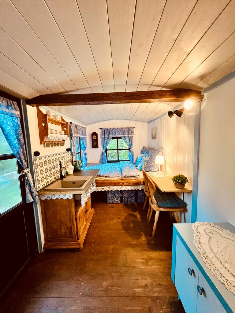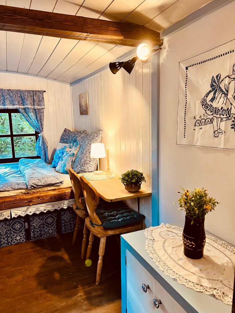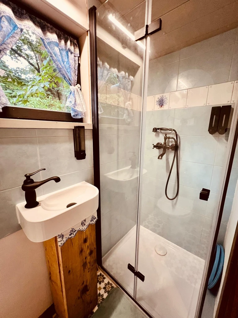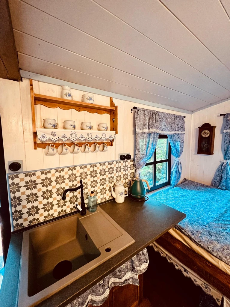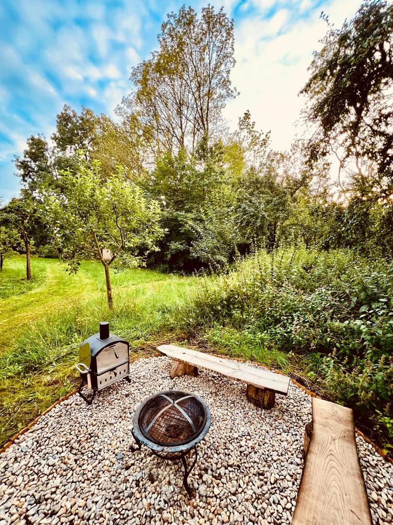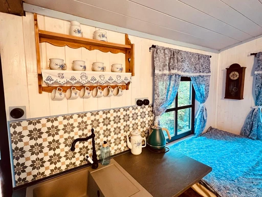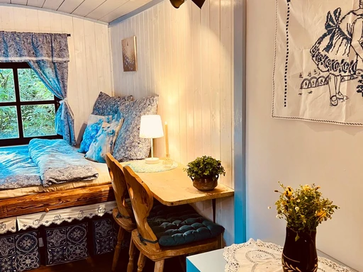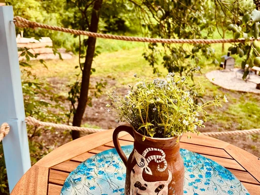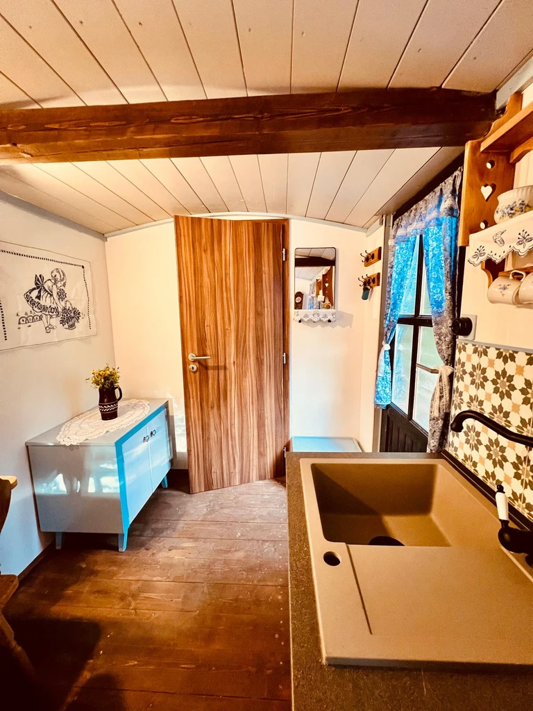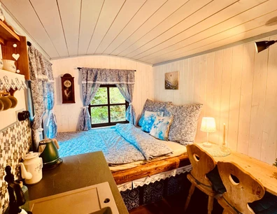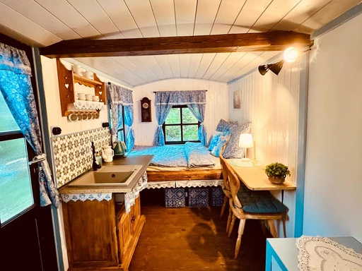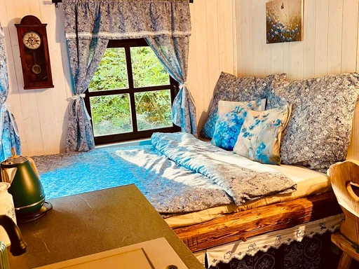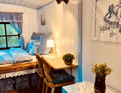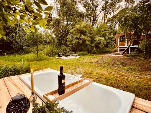 Maringotka Pomněnka je ideálním útočištěm pro ty, kdo hledají klid a pohodu. Relaxujte ve venkovní vaně pod hvězdami, osvěžte se solární sprchou nebo si večer užijte posezení u venkovního otevřeného ohně, grilu či elektrického krbu. V malebné kuchyňce si snadno připravíte oblíbená jídla a celý pobyt si vychutnáte v naprostém soukromí. Prostorná zahrada obklopená vzrostlými jasany a bezy poskytuje klidné prostředí pro čtení, odpočinek nebo jen nasávání atmosféry. Každý okamžik zde zpomaluje čas a dovoluje zapomenout na spěch – dokonalá kombinace romantiky, relaxace a blízkosti přírody.