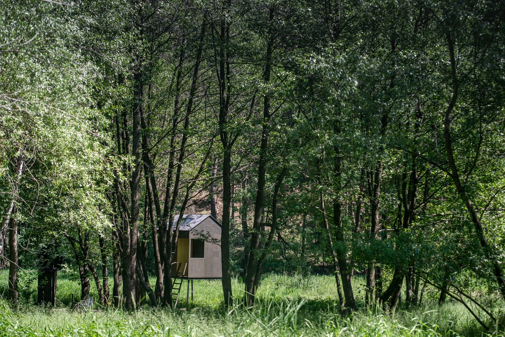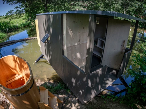 Útulný posed v olšovém háji nad potokem nabízí klid a výhledy do krajiny. Ideální místo pro páry i malé rodiny, které hledají netradiční útočiště v přírodě se základním zázemím a odpočinkovou atmosférou.