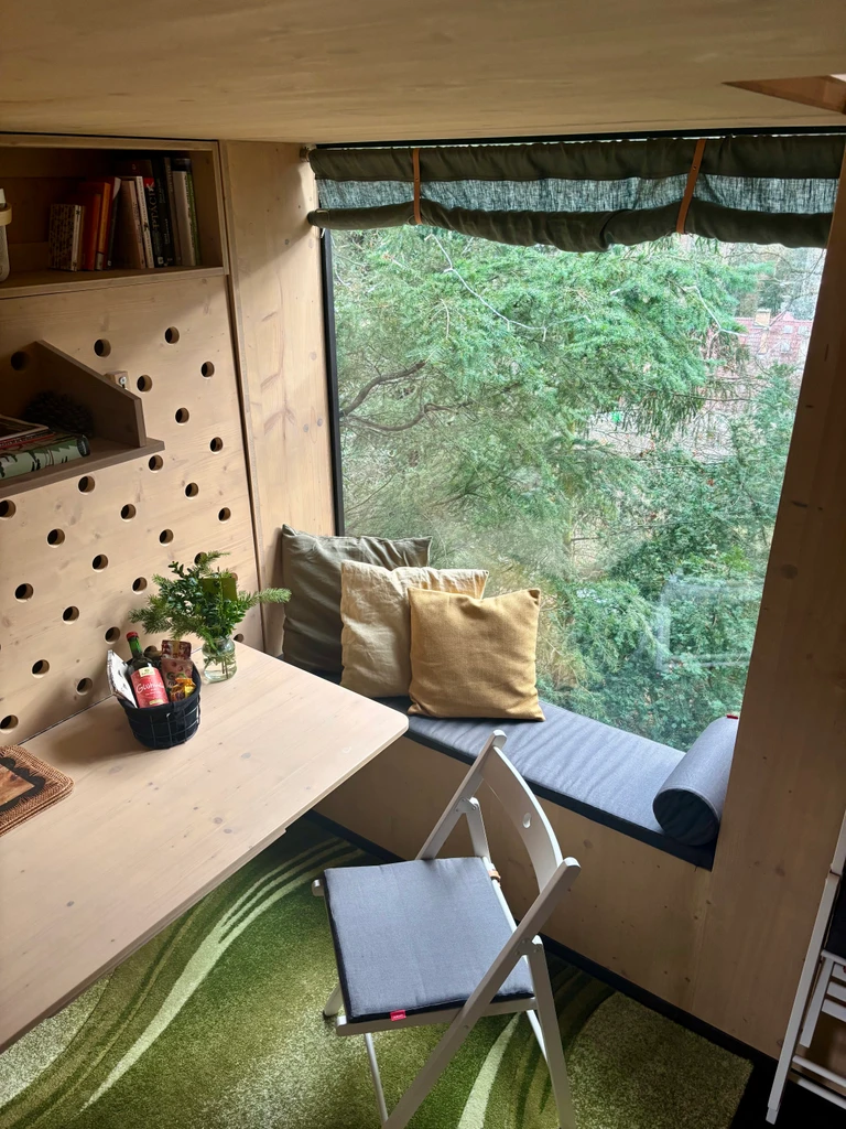 Glamping v Praze? Únik do přírody, kde to nečekáte! Objevte kouzlo spaní na posedu v tichu lesa nad Vltavou, jen 30 minut od centra Prahy. Minimalistické, ale útulné ubytování pro 1-3 osoby s výhledem, soukromou koupelnou, kuchyňským koutem a zahradou.