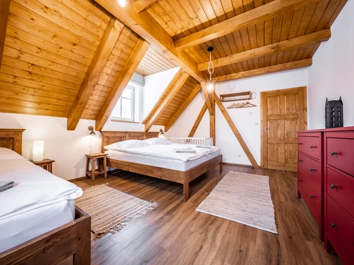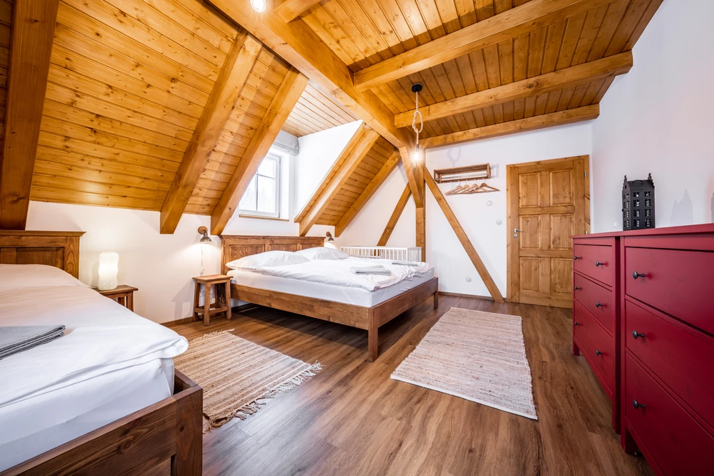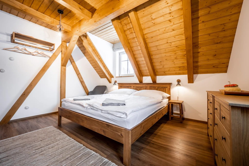Roubenka na slunné louce u lesa vás přivítá teplem, klidem a atmosférou, ze které se vám nebude chtít zpět do světa. Uvnitř najdete plně vybavenou kuchyň na ranní kávu, lívance i večerní bramboračku, dvě koupelny, pohodlné spaní a útulno, kam se podíváš. Pro děti je tu hřiště a podkrovní herna, pro dospělé gril. A v zimě? Stačí otevřít dveře a jsi rovnou na běžkách!