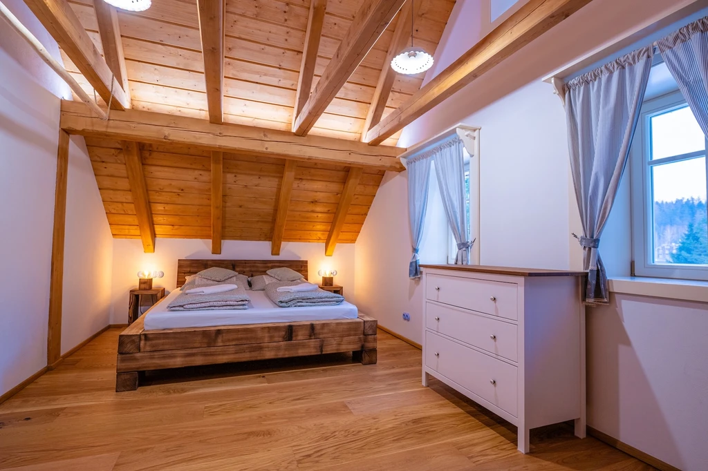 Roubenka U Malírny je prostorné a pohodové zázemí na Šumavě, ideální pro rodiny i skupiny přátel, kteří chtějí spojit pobyt v přírodě s komfortem. Chalupa nabízí tři samostatné ložnice, plně vybavenou kuchyň a společenský prostor, kde se všichni pohodlně sejdou u jídla i večerního posezení. Po dni stráveném venku přijde vhod sauna, která zajistí relax a příjemné zpomalení.